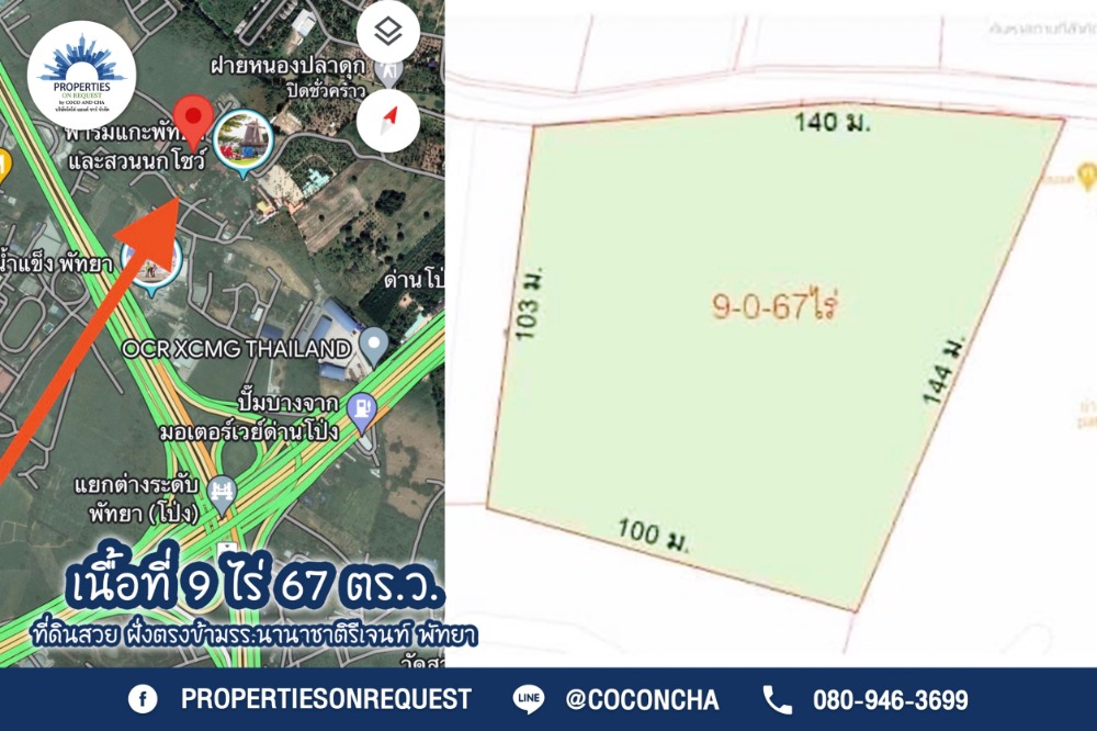📌 ที่ตั้ง: ตำบลโป่ง อำเภอบางละมุง จังหวัดชลบุรี 20150 🌳 เนื้อที่รวม 9-0-67 ไร่ 🔥 เจ้าของขาย 45,837,500 บาท**(ราคา 12,500 บาทต่อไร่) 📢 รายละเอียดที่ดิน: ✅ ที่ดินผังสีส้ม รูปที่ดินสี่เหลี่ยมสวยงาม หน้ากว้างติดถนนราดยาง ราว 140 เมตร ✅ เข้า-ออกได้หลายเส้นทาง ติดกับฟาร์มแกะพัทยา ฝั่งตรงข้ามโรงเรียนนานาชาติรีเจนท์พัทยา และเพียง 10 นาทีไปโรงเรียนนานาชาติรักบี้, ใกล้ทางหลวงสาย 36 พัทยา-ระยอง และใกล้มอเตอร์เวย์ ✅ ใกล้สิ่งอำนวยความสะดวกมากมาย สนามกอล์ฟสยามคันทรีคลับ ร้านอาหารชื่อดัง และสถานที่ท้องเที่ยวต่างๆ 🚗ทำเลใกล้เคียง: ✅ ห่างจาก ดอลฟินนาเรียมพัทยา เพียง 8.2 กม. (8 นาที) ✅ ห่างจาก ECO HOTEL เพียง 10.2 กม. (10 นาที) ✅ ห่างจาก ร้านอาหารมุมอร่อย สาขานาเกลือ เพียง 10.5 กม. (10 นาที) ✅ ห่างจาก โรงพยาบาลบางละมุง เพียง 11.7 กม. (11 นาที) ✅ ห่างจาก Centre Point Prime Hotel Pattaya เพียง 12.9 กม. (12 นาที) ✅ ห่างจาก พิพิธภัณฑ์ปราสาทสัจธรรม เพียง 13.7 กม. (14 นาที) ✅ ห่างจาก Centara Grand Mirage Beach Resort Pattaya เพียง 14.1 กม. (14 นาที) ✅ ห่างจาก เซ็นทรัลพัทยาบีช เพียง 14.8 กม. (15 นาที) ✅ ห่างจาก เมืองพัทยา เพียง 16.2 กม. (18 นาที) ✅ ห่างจาก Paradise Park เพียง 19.2 (21 นาที่) ✅ ห่างจาก พัทยา, ท่าเรือแหลมบาลีฮาย - เกาะล้าน เพียง 19.3 (21 นาที่) ✅ ห่างจาก สถานที่ท่องเที่ยว Water Park by Pattaya เพียง 20.4 กม. (22 นาที) ✅ ห่างจากตลาดน้ำ 4 ภาค เพียง 21.8 กม. (23 นาที) ✅ ห่างจากสวนน้ำการ์ตูนเน็ทเวิร์ค เพียง 30.8 กม. (30 นาที) ✅ ห่างจากสนามบินอู่ตะเภา ประมาณ 41.5 กม. (42 นาที) ✅ เดินทางสะดวก ใกล้ร้านสะดวกซื้อ ร้านค้า โรงแรม แหล่งช้อปปิ้ง ร้านอาหาร คาเฟ่ ร้านกาแฟ และสถานที่ท่องเที่ยวต่างๆ 📢 พิกัดโรงแรม: https://goo.gl/maps/2ivuCH6n8RECniCA6 สนใจติดต่อ..👇👇 🏡 Properties on Request by COCO and CHA 📞Phone no.: คลิกเพื่อดูเบอร์โทรติดต่อ 📧 Email: คลิกเพื่อดูอีเมล 🌐 FB: https://bit.ly/2DJwnkA 📱Line ID: @coconcha