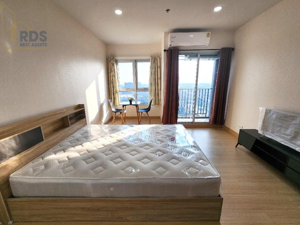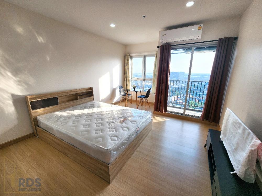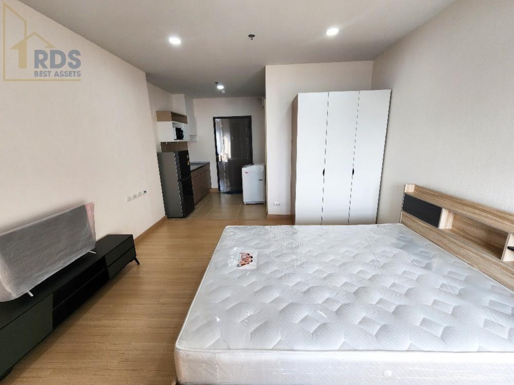 พร้อมหิ้วกระเป๋าเข้าอยู่ได้เลย :: สถานีรถไฟฟ้า BTS ปู่เจ้า 200 ม. :: รายละเอียดห้อง Studio 1 ห้องนอน 1 ห้องน้ำ ขนาด 29 ตรม.ชั้น 30 ::เฟอร์นิเจอร์ครบ เตียงพร้อมที่นอน 5 ฟุต เคาทเตอร์ครัว ตู้เสื้อผ้า ::