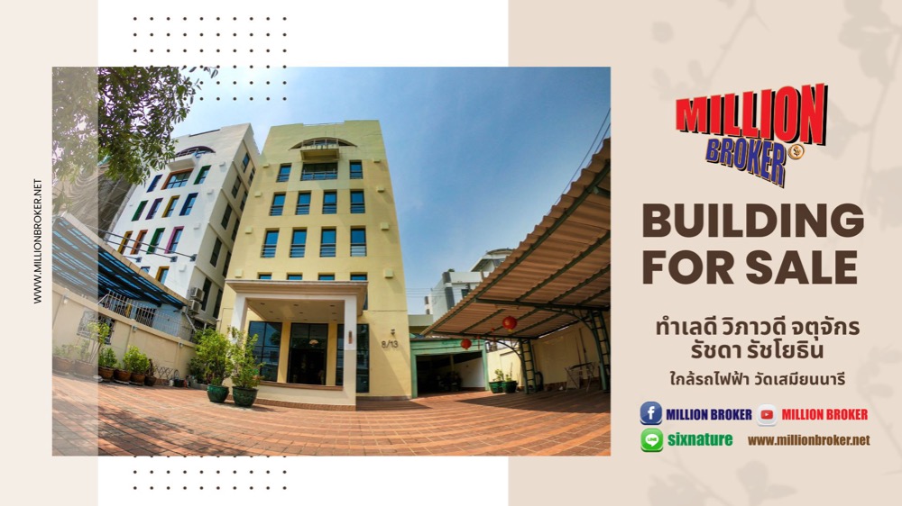 ถ้าคุณหาซื้อ ทำเลย่านกลางเมือง-ใกล้รถไฟฟ้า อย่าคลิ๊กชม 📍ยินดีรับเสนอราคาซื้อ 🚝 อาคาร 7 ชั้น ทำเลดี วิภาวดี - จตุจักร ใกล้ #รถไฟฟ้าสถานีวัดเสมียนนารี ย่านตึก สำนักงาน ที่จอดรถส่วนตัวเยอะ ติดถนน 2 ด้าน แปลงมุม 🌇 อาคาร 7 ชั้น พื้นที่ใช้สอย 700 ตร.เมตร 🔹 5 ห้องนอน 17 ห้องน้ำ ห้องสันทนาการฯลฯ 🔹 ที่ดิน เนื้อที่ 121.8 ตร.วา (ต่อเติมสร้างเพิ่มได้) แปลงมุมติด ถนนสาธารณะ 2 ด้าน 🔹 ระบบ ลิฟต์ 6 ชั้น, ไฟ 3 เฟส 🔹 แอร์ 9 เครื่อง + เฟอร์นิเจอร์บิวอินพร้อมใช้ 🔹 โครงสร้างอาคาร ดีเยี่ยม พร้อมอยู่ 🔹 ลานจอดรถ 12-15 คัน 🌇 อาคารส่วนบุคคล (ไม่มีส่วนกลาง) ———————— เดินทางสะดวก หลายเส้นทาง วิภาวดีขาเข้าเมือง, จตุจักร, หลักสี่,รัชดา ,ประชาชื่น 🚶🏻♂️ 3 นาที - ใกล้สถานีรถไฟฟ้าวัดเสมียนนารี 🚗 3 นาที - รพ. วิภาวดี 🚗 5 นาที - ม.เกษตรฯ 🚗 5 นาที - เมเจอร์รัชโยธิน ———————— 💸 ราคาขาย 88 ล้านบาท (แปดสิบแปดล้านบาท) โอนกรรมสิทธิ์ 50/50 (โฉนดพร้อมโอน ไม่ติดภาระ) ยินดีรับข้อเสนอราคาซื้อ คุยงบประมาณเบื้องต้น *อาคาร 7 ชั้น โครงสร้างดีเยี่ยม ทำเล วิภาวดี จตุจักร ใกล้สถานีรถไฟฟ้าวัดเสมียนนารี เดินทางสะดวก เชื่อมถนนหลายสาย ย่านกลางเมือง รัชโยธิน ห้าแยกลาดพร้าว สอบถาม เพิ่มเติม นัดชมแจ้งล่วงหน้า ☎️ คลิกเพื่อดูเบอร์โทรติดต่อ 📲 Line ID : sixnature Click 📲 https://line.me/ti/p/WPl-bcqCFA ชมอสังหาฯ น่าลงทุน Website https://millionbroker.net คลิ๊กลิ้งค์ชมวีดีโอภายใน https://youtu.be/FhBNU5yRncY #ขายตึกสำนักงานติดรถไฟฟ้าสายสีแดงเข้ม #ขายตึกสำนักงานใกล้โรงพยาบาลวิภาวดี #ตึก7ชั้นสวยพร้อมอยู่สถานีรถไฟฟ้าวัดเสมียนนารี #ขายอาคารใจกลางเมืองรัชดาจตุจักรวิภาวดี #ขายอาคารสำนักงานใกล้เมเจอร์รัชโยธิน