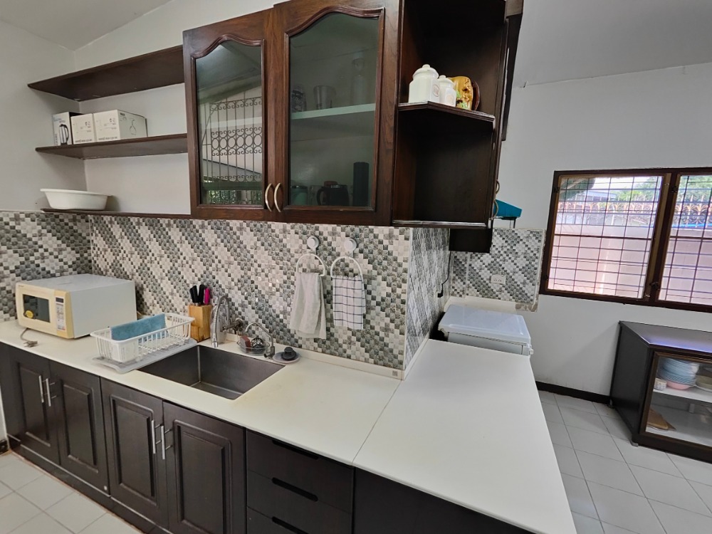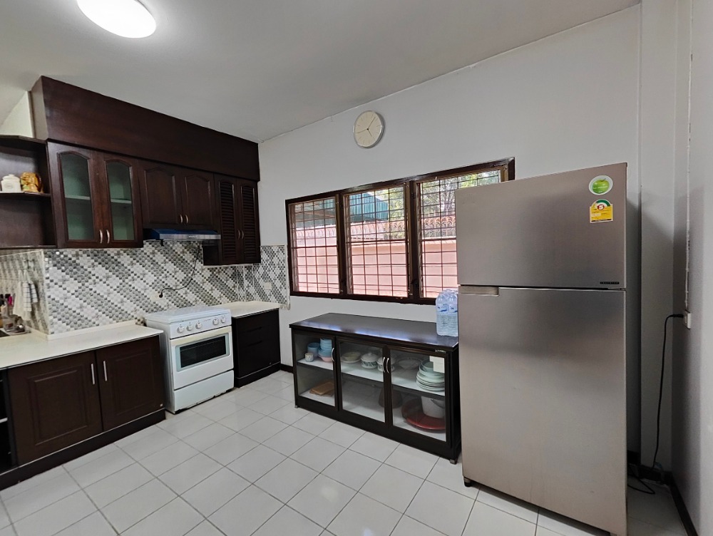 บ้านเดี่ยว 2 ชั้น บนเนื้อที่ 180 ตารางวา 4 ห้องนอน 3 ห้องน้ำ ตกแต่งพร้อมครบทั้งเฟอร์นิเจอร์บิวท์อินและลอยตัว เตียงนอน โต๊ะทานข้าว โซฟา เครื่องปรับอากาศ ห้องครัวกว้างขวาง ตู้เย็นใบใหญ่ ห้องซักผ้า/อเนกประสงค์เชื่อมต่อกับครัว เรือนแยกนอกตัวบ้านหลักใช้เป็นห้องแม่บ้านและห้องเก็บของได้ (ห้องน้ำนอกตัวบ้านหลักอีก 1 ห้องสำหรับแม่บ้าน คนขับรถ ฯลฯ) จุดเด่น • พื้นที่ใช้สอยรวม 1,000 ตร.ม. • มีเรือนกระจกนอกตัวบ้านเตรียมพร้อมสำหรับใช้เป็นออฟฟิศทำงานได้ • สนามหญ้ากว้าง มีต้นไม้ให้พักสายตารื่นรมย์ใจ มุมบ้านเห็นท้องฟ้ากว้าง • จอดรถในบ้านได้มากถึง 10 คัน • ห้องครัวกว้างเป็นสัดส่วน ทำอาหารสะดวกสบายไม่รบกวนห้องโถงใหญ่ • มีห้องน้ำนอกตัวบ้านสำหรับแม่บ้านหรือบริวาร แยกเป็นสัดเป็นส่วน • ห้องอเนกประสงค์หลังบ้านกว้างขวาง สามารถปรับใช้งานได้ทุกรูปแบบ • อยู่ในชุมชนที่ไม่พลุกพล่าน เป็นระเบียบ บรรยากาศเงียบสงบมากๆ ไม่มีตึกสูงระฟ้ารายรอบ ตอนเย็นสามารถเดิน วิ่ง ขี่จักรยานออกกำลังกายได้อย่างปลอดภัย • อยู่ในซอยลาดพร้าว 130 เชื่อมทะลุตรงกับรามคำแหง 81 แต่อยู่ซอยแยกจากซอยหลักเข้าไปนิดเดียว • ใกล้สถานีรถไฟฟ้าลาดพร้าว 101 (สายสีเหลือง) และท่าเรือวัดกลาง เดินทางเข้าเมืองผ่านคลองแสนแสบ • ปากซอยมี CJ More, Lotus's Go Fresh และ 7/11 อยู่ห่างบ้านแค่ 100 เมตร • ใกล้ The Mall บางกะปิ, Makro ลาดพร้าว, Foodland ลาดพร้าว • ใกล้โรงพยาบาลเวชธานี และโรงพยาบาลลาดพร้าว บ้านได้รับการปรับปรุงอย่างสม่ำเสมอ เจ้าของบ้านคอยดูแลอย่างดี ยกกระเป๋าเข้าอยู่ได้ทันที ค่าเช่าเดือนละ 110,000 บาท สัญญาขั้นต่ำ 1 ปี ชำระล่วงหน้า 1 เดือนพร้อมเงินประกัน 250,000 บาท ติดต่อ คุณยุทธิชัย คลิกเพื่อดูเบอร์โทรติดต่อ