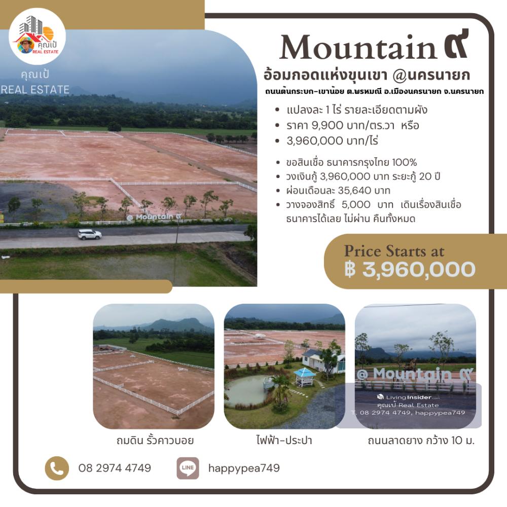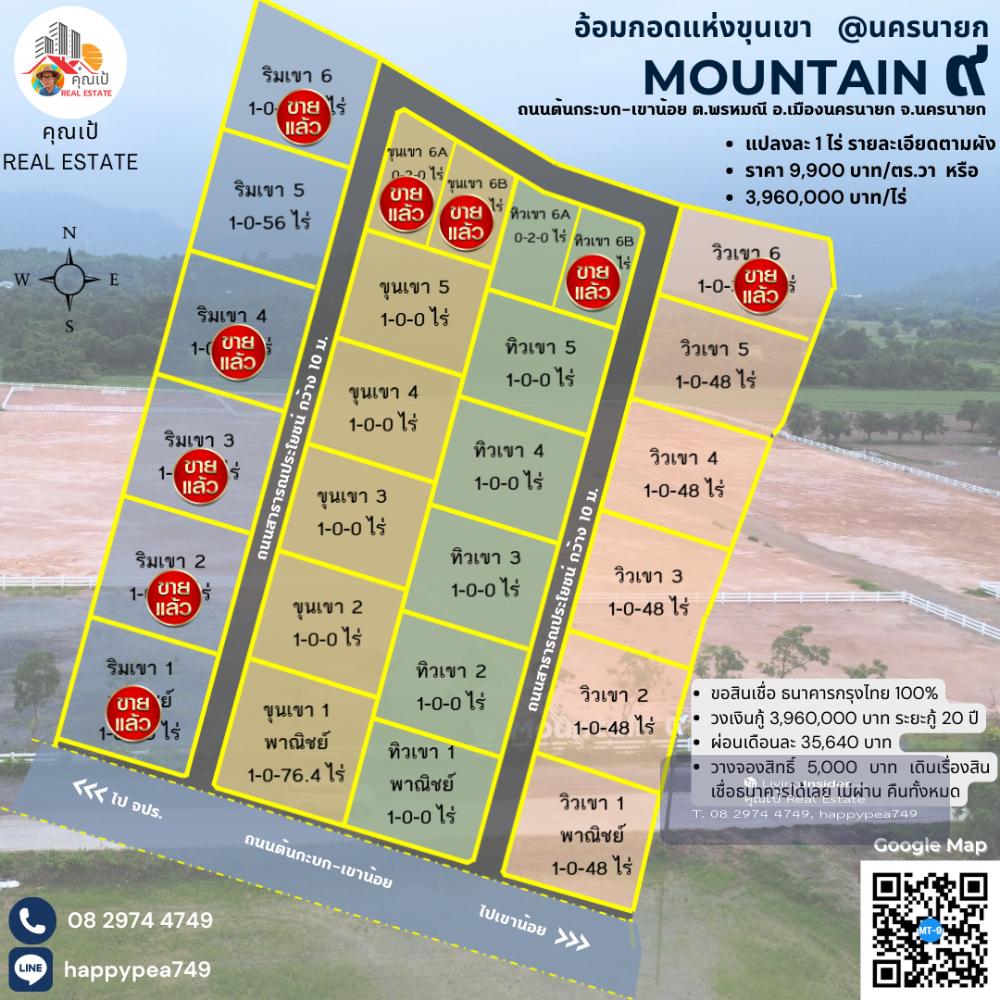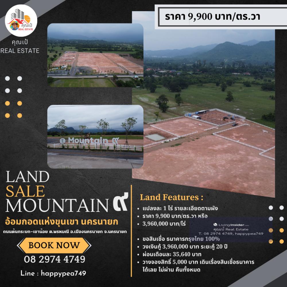 ที่ดินสวย ใกล้ จปร. นครนายก ขนาด 1 ไร่ ทำเลดีที่สุด ที่ตั้ง @Mountain๙ อ้อมกอดขุนเขา ถนนต้นกระบก-เขาน้อย ตำบลพรหมณี อำเภอเมืองนครนายก นครนายก https://goo.gl/maps/PRk5VUmpdfKM6U1c9 วิวเขาชะโงก จปร. เงียบสงบ ใกล้ชิดธรรมชาติ จะพัฒนาให้ครบทุกอย่าง มีน้ำประปา ไฟฟ้า ถมดิน ถนนสาธารณะ พร้อมปลูกบ้านสวยๆ ได้เลย ไม่ต้องเสียเวลามาทำการพัฒนาที่ดินเอง ติดถนนต้นกระบก-เขาน้อย มีความเจริญ เดินทางสะดวกมากๆ ไม่ลึก ไม่เปลี่ยว น้ำไม่ท่วม รถไม่ติด ใกล้โรงพยาบาล ใกล้ตลาดนัด ร้านอาหาร หาของกินสะดวก สวยจริง ทำเลดีมาก คุ้มที่สุด สำหรับอยู่อาศัยก็ได้ ทำการค้า บ้านเช่า รีสอร์ทเล็กๆ ก็ดี ที่ดินทุกแปลงทั้งโครงการ จะพัฒนา... 1. ถมดินทุกแปลง 2. ถนนลาดยางสาธารณะ กว้าง 10 เมตร รอบโครงการ 3. รั้วคอกม้าคาวบอยรอบแปลง 4. ระบบไฟฟ้า 3 เฟส 5. ประปาหน้าแปลง 6. โฉนด นส.4 ครุฑแดง พร้อมโอน รวมค่าโอนทุกอย่างแล้ว โปรโมชั่นพิเศษ ภายในเดือนนี้ ราคาปกติ 12,500 บาท/ตร.วา หรือ 5,000,000 บาท/ไร่ ลดเหลือ 9,900 บาท/ตร.วา -เงินสด วางเงินจองทำสัญญา เพียง 100,000 บาท นัดโอนได้เลย -ขอสินเชื่อ ธนาคารกรุงไทย 100% วงเงินกู้ 3,960,000 บาท ระยะกู้ 20 ปี ผ่อนเดือนละ 35,640 บาท วางจองสิทธิ์ 5,000 บาท เดินเรื่องสินเชื่อธนาคารได้เลย ไม่ผ่าน คืนทั้งหมด สถานที่ใกล้เคียง รพ.นครนายก 11 กม. รพ.รร.จปร. 4 กม. รร.นายร้อย จปร. 3 กม. รร.เตรียมทหาร 7 กม. โกลบอลเฮาส์ 8 กม. โลตัส 11 กม. แม็คโคร 14 กม. สนามกอล์ฟ เขาชะโงก 3.7 กม. น้ำตกสาริกา 23 กม. วัดหลวงพ่อปากแดง 13 กม. อุทยานพระพิฆเนศ 16 กม. วัดมณีวงศ์ 16 กม. บะหมี่โหน่งชะชะช่า 5.5 กม. ตลาดเท่งเถิดเทิง 16 กม. แวะพูดคุยสอบถามที่สำนักงานขายของโครงการได้ก่อนนะครับ ติดต่อ คุณเป้ ☎️ คลิกเพื่อดูเบอร์โทรติดต่อ Line : happypea749 คลิก https://line.me/ti/p/WbmkWfUuvu 🎁คุณได้รับคำเชิญให้เข้าร่วม "ที่ดินนครนายก กู้แบงค์ สินเชื่อธนาคาร 100%" โปรดแตะลิงก์ด้านล่างเพื่อเข้าร่วมโอเพนแชทนี้ เพื่อรับข้อมูลเพิ่มเติม https://line.me/ti/g2/7oPHD7p72KMZExq63HNO2t91RpNTn9I_XQovcQ?utm_source=invitation&utm_medium=link_copy&utm_campaign=default #เขาชะโงก #จปร #ที่ดินนครนายก #ที่ดินวิวเขา #ที่ดินติดถนน #โฉนดครุฑแดง #ที่ดินเพื่อการลงทุน #มรดกที่ดิน #ของขวัญปีใหม่ #ของขวัญวันครบรอบ