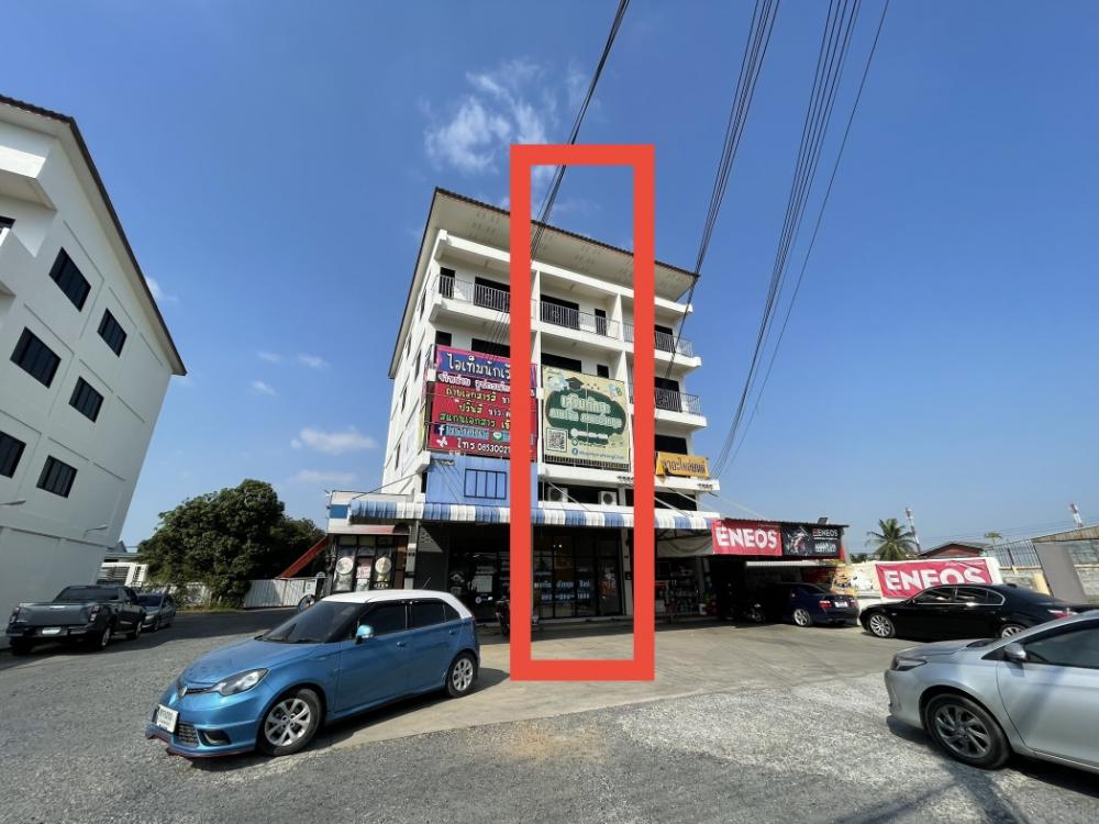 อยู่ในย่านชุมชน ใกล้ ตลาด โรงเรียน หมู่บ้าน ตรงข้ามเป็นหมู่บ้านจัดสรรหลายโครงการ ติดถนนสังฆสันติสุข มีที่จอดรถ หน้าตึกจอดได้ 4 คันสภาพใหม่ ไม่เคยอยู่เอง ชั้น 1 ติดกระจกหน้าร้าน เครื่องปรับอากาศ มีห้องน้ำ ชั้น 2 กั้นห้องสองห้องติดแอร์ ชั้น 3 ไม่ได้ใช้งาน มีห้องน้ำ ชั้น 4 ไม่ได้ใช้งาน ปูพื้นไม้ลามิเนต มีห้องน้ำ ชั้นบนเหมาะกับอยู่อาศัย ชั้นล่างทำธุรกิจ