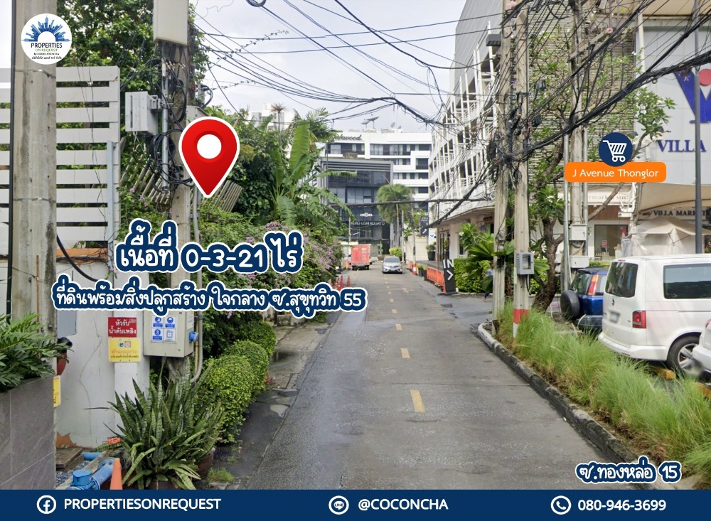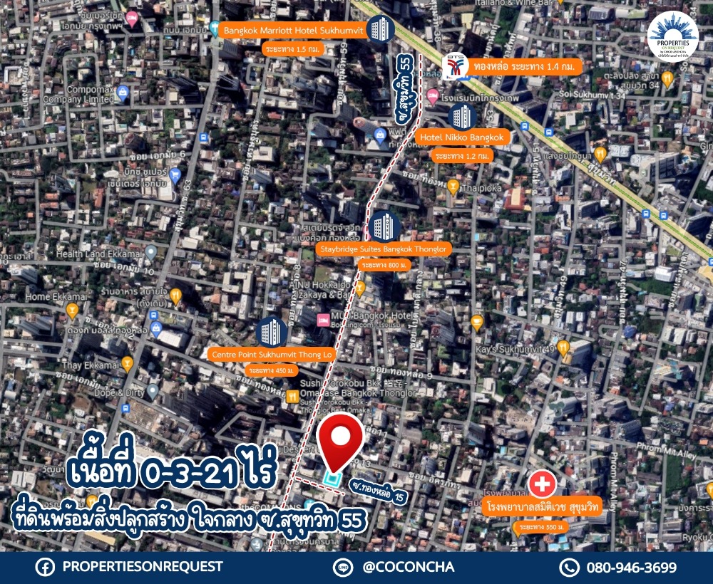 📌 ที่ตั้ง: ซอยทองหล่อ 15 แขวงคลองตันเหนือ เขตวัฒนา กรุงเทพมหานคร 🌳 เนื้อที่: 0-3-21 ไร่ (321 ตารางวา) 🔥 เจ้าของขาย: 640 ล้านบาท (ราคา 1,993,770 บาทต่อตารางวา)**สนใจต่อรอง 🔎 รายละเอียดทรัพย์: ✅ ที่ดินรูปสี่เหลี่ยมผืนผ้า ผังสีเขตสีน้ำตาล ย.9-19 ✅ ด้านหน้าติดซอยทองหล่อ 15 ราว 28 เมตร/ ด้านหลัง ราว 26 เมตร/ ด้านซ้าย ราว 48 เมตร/ ด้านขวา ราว 47 เมตร ✅ หน้ากว้างถนนซอยทองหล่อ ประมาณ 6 เมตร ✅ ห่างจาก เจ อเวนิว ทองหล่อ (J-Avenue Thonglor) เพียง 130 เมตร (2 นาที) ✅ ห่างจาก BTS สถานีพร้อมพงษ์ เพียง 2.2 กม (5 นาที) ✅ ห่างจาก ห้างดิเอ็มโพเรียม เพียง 2.3 กม (5 นาที) ✅ ห่างจาก เอมควอเทียร์ เพียง 2.4 กม (6 นาที) ✅ ห่างจาก โรงพยาบาลกรุงเทพ เพียง 3.0 กม. (8 นาที) ✅ ห่างจาก รถไฟใต้ดิน MRT สถานีอโศก เพียง 3.5 กม. (8 นาที) ✅ ห่างจาก เทอร์มินอล 21 อโศก เพียง 4.8 กม. (12 นาที) ✅ ห่างจาก โรงพยาบาลบำรุงราษฎร์ อินเตอร์เนชั่นแนล เพียง 5.0 กม. (13 นาที) ✅ ห่างจาก เซ็นทรัล ชิดลม เพียง 7.3 กม. (13 นาที) ✅ ห่างจาก JW Marriott Hotel Bangkok เพียง 8.1 กม. (15 นาที) ✅ ใกล้ แยกอโศก เพลินจิต เซ็นเตอร์ เพียง 8.7 กม (16 นาที) ✅ ห่างจาก โรงแรมโนโวเทล เพียง 9.5 กม. (17 นาที) ✅ ห่างจาก เซ็นทรัล เอ็มบาสซี (Central Embassy), ห้างเซ็นทรัลเวิลด์ (Central World), ห้างเซ็นทรัล ชิดลม(Central Chidlom), และห้างสรรพสินค้า สยามพารากอน (Siam Paragon) ประมาณ 7-15 กม. (7-18 นาที) ✅ เดินทางสะดวกใกล้ทางด่วน, รถโดยสาร, สถานีรถไฟฟ้า BTS, ร้านอาหาร, ร้านสะดวกซื้อ, ซุปเปอร์มาร์เก็ต, ร้านค้า, วิลล่า, คาเฟ่, แหล่งช้อปปิ้ง, ห้างสรรพสินค้า, โรงแรม, และอื่นๆ ✅ เหมาะสำหรับสร้างบ้านพัก ตึก คอนโด โรงแรม หรืออื่นๆ สนใจติดต่อ..👇👇 ☎️ โทร: คลิกเพื่อดูเบอร์โทรติดต่อ 📩 Email: คลิกเพื่อดูอีเมล 📲 Line ID: @coconcha
