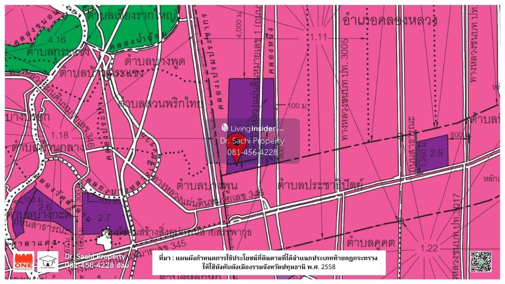Property ID : LS66008 Land for Sale ที่ดินเปล่าแปลงใหญ่ เนื้อที่ 17-1-93 ไร่ (6,993 ตารางวา) - ที่ดิน ทั้งหมด 8 แปลง โฉนดพร้อมโอน (เขตพื้นที่ผังเมือง สีม่วง) - ที่ดิน มีทางเข้าออก 2 ทาง ติดถนนคอนกรีต ถ.คลองหลวง 1 ถนนกว้าง 6 เมตร - ที่ดิน ลักษณะรูปสี่เหลี่ยมพื้นผ้า หันหน้า ทิศเหนือ ------------------------------------------------ : : ลักษณะเด่น : : - ทำเลดีมาก เพียง 760 เมตร จาก ถ.พหลโยธิน เข้า-ออก ตัวเมือง สะดวกรวดเร็ว - ใกล้แหล่งชุมชน สถานศึกษา ห้างสรรพสินค้า ซุปเปอร์มาร์เก็ต ตลาด ธนาคาร สถานที่ราชการ โรงพยาบาล โรงงานอุตสหกรรม ระบบขนส่งสาธารณะที่เพียบพร้อม สะดวกรวดเร็ว - เชื่อมต่อหลายเส้นทาง ถ.รังสิต-ปทุมธานี, ถ.พหลโยธิน, ถ.ชัยพฤกษ์ ใกล้ทางยกระดับอุตราภิมุข, ทางพิเศษกาญจนาภิเษก - ใกล้ โครงการรถไฟทางคู่, รถไฟฟ้าชานเมือง สายสีแดง, รถไฟฟ้าควมเร็วสูง สายเหนือ ------------------------------------------------ สถานที่ตั้ง : : ซ.คลองหลวง 1 (เทพประทาน) ต.คลองหนึ่ง อ.คลองหลวง จ.ปทุมธานี Google Map : : https://goo.gl/maps/pBokCxSTeA28ChqF7 ------------------------------------------------ : : สถานที่สำคัญใกล้เคียง : : - Lotus รังสิต - ฟิวเจอร์พาร์ค รังสิต - เซียร์ รังสิต - ตลาดสี่มุมเมือง - Workpoint Entertainment - โรงกษาปณ์ รังสิต - สถานีรังสิต (รถไฟฟ้าชานเมืองสายสีแดง) - ท่าอากาศยานดอนเมือง - ม.ราชมงคลธัญบุรี ศูนย์รังสิต - ม.กรุงเทพ - ม.ธรรมศาสตร์ ศูนย์รังสิต - โรงพยาบาลปทุมเวช - โรงพยาบาลเปาโลรังสิต - โรงพยาบาลแพทย์รังสิต - วัดเปรมประชา ------------------------------------------------ ราคาขาย : : 280,000,000 บาท (40,040 บาท/ตร.ว.) (ค่าใช้จ่ายในการโอน ออกคนละครึ่ง) -------------------------------------------------------- : : สอบถามรายละเอียดเพิ่มเติมติดต่อ : : คุณฌัชษชี ฌัชปภาส์มณ (อ้อม) (ในสังกัดสมาคมนายหน้าอสังหาริมทรัพย์ไทย) Tel : คลิกเพื่อดูเบอร์โทรติดต่อ LINE ID : dr.sachiproperty LINE OA : @dr.sachiproperty Facebook : Dr. Sachi Property