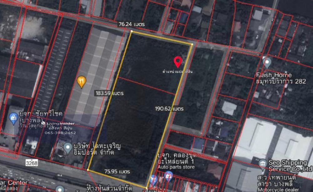 ให้เช่าที่ดินแปลงมุม ติดถนนเทพารักษ์ 9 ไร่ 84 ตารางวา ใกล้สี่แยกบางพลี ก่อนถึงบิ๊กซี และ โรงพยาบาลบางพลี ตรงข้าม ตลาดทิพย์นิมิตร บางพลี (ตลาดต่อยอด) จังหวัด สมุทรปราการ 💵ให้เช่า 390,000 บาท/เดือน *ค่าหน้าดิน 15 ล้าน สัญญาเช่าขั้นต่ำ 5 ปี 💙รหัสทรัพย์ : SP-L20 + เนื้อที่ดิน 9 ไร่ 84 ตารางวา + ถมเท่าถนน ล้อมรั้วแล้ว + ติดถนนเทพารักษ์ + ใกล้สี่แยกบางพลี + ตำบล บางพลีใหญ่ + อำเภอ บางพลี + จังหวัด สมุทรปราการ ----------------------------- ️รูปแปลงที่ดินเป็นรูป สี่เหลี่ยมผืนผ้า แปลงมุม ติดถนน 3 ฝั่ง เข้าออกได้ทั้งด้านหน้าที่ติดถนนเทพารักษ์ ซอยด้านข้าง(ถนนสุขาภิบาล และด้านหลัง ที่สามารถไปทะลุ ถนนกิ่งแก้ว(3256) ได้อีกด้วย หน้าที่ดินหันหน้าทิศใต้ มีส่วนติดถนนประมาณ 75 เมตร ลึกอีกประมาณ 197 เมตร แนวลึกติดถนนซอยทั้งแถบ ด้านขวา และด้านหลังติดถนนซอยทั้งเส้นเช่นกัน ️รายละเอียดการเช่า ค่าเช่าจะเก็บรวมทีละ 1 ปี ค่าหน้าดินชำระครั้งเดียวก่อนเข้าใช้พื้นที่ **หากต้องการเจรจา หรือต่อรองในส่วนไหน รบกวนติดต่อคุยรายละเอียดทางไลน์ เนื้อที่ดิน 9 ไร่ 84 ตารางวา (3,684 ตารางวา) ตามราคาตลาด ตอนนี้ขายอยู่ที่ 120,000/ตารางวา มูลค่าที่ดินจะอยู่ที่ 442,080,000 บาท **หากสนใจซื้อ รบกวนติดต่อคุยรายละเอียดทางไลน์ ----------------------------- 🚗สถานที่ใกล้เคียง : บิ๊กซี ซูเปอร์เซ็นเตอร์ บางพลี ตลาดทิพย์นิมิตร บางพลี (ตลาดต่อยอด) ตลาดโบราณบางพลี ตลาดนัดเรือบิน มาร์เก็ตวิลเลจ สุวรรณภูมิ ที่ว่าการอำเภอบางพลี สนามกอล์ฟกรีนวัลเล่ คันทรีคลับ โรงพยาบาลบางพลี โรงพยาบาลจุฬารัตน์ 3 อินเตอร์ โรงพยาบาลบางนา 5 วัดบางพลีใหญ่ โรงเรียนสารสาสน์วิเทศสุวรรณภูมิ The American School Of Bangkok – Green Valley Campus มหาวิทยาลัยหัวเฉียวเฉลิมพระเกียรติ วิทยาเขตบางพลี เมกาบางนา ----------------------------- 📍พิกัด : 13.60423144,100.70241685 https://goo.gl/maps/T7atJsjsQbFuwp9r5 ----------------------------- 👨💼 สอบถามเพิ่มเติม นัดชมสถานที่ 🟢 Line ID : pohparos (https://goo.gl/DZ1G5v) 🔵 คลิกเพื่อดูเบอร์โทรติดต่อ (คุณสีฝุ่น) ที่ปรึกษาอสังหาฯ ----------------------------- + รับฝากขาย เช่า ขายฝาก อสังหาฯ ทุกประเภท + บริการสินเชื่อ ดอกเบี้ยถูก วงเงินสูง อนุมัติไว + ปรึกษาปัญหา วางแผน การซื้อ-ขาย อสังหาฯ + หาทรัพย์ตรงใจ พร้อมดูแลการโอนกรรมสิทธิ์ + จัดเตรียมสภาพบ้าน,คอนโด เพื่อเพิ่มราคาประเมิน #ที่ดินให้เช่า #ให้เช่าที่ดินแปลงใหญ่ #เช่าที่ดินติดถนน #เช่าที่บางพลี #เช่าที่สมุทรปรการ #ที่ดินแปลงใหญ่ #ที่ดินติดถนน #อสังหาสีฝุ่น #นายหน้ามืออาชีพ #นายหน้าขายบ้าน #นายหน้าขายที่ดิน #นายหน้าคอนโด #รับฝากขาย #รับฝากขายบ้าน #รับฝากขายที่ดิน #รับฝากขายคอนโด #รับฝากขายอพาร์ทเม้นท์ #รับฝากขายบ้านมือสอง #รับฝากขายบ้านโครงการ #รับฝากขายบ