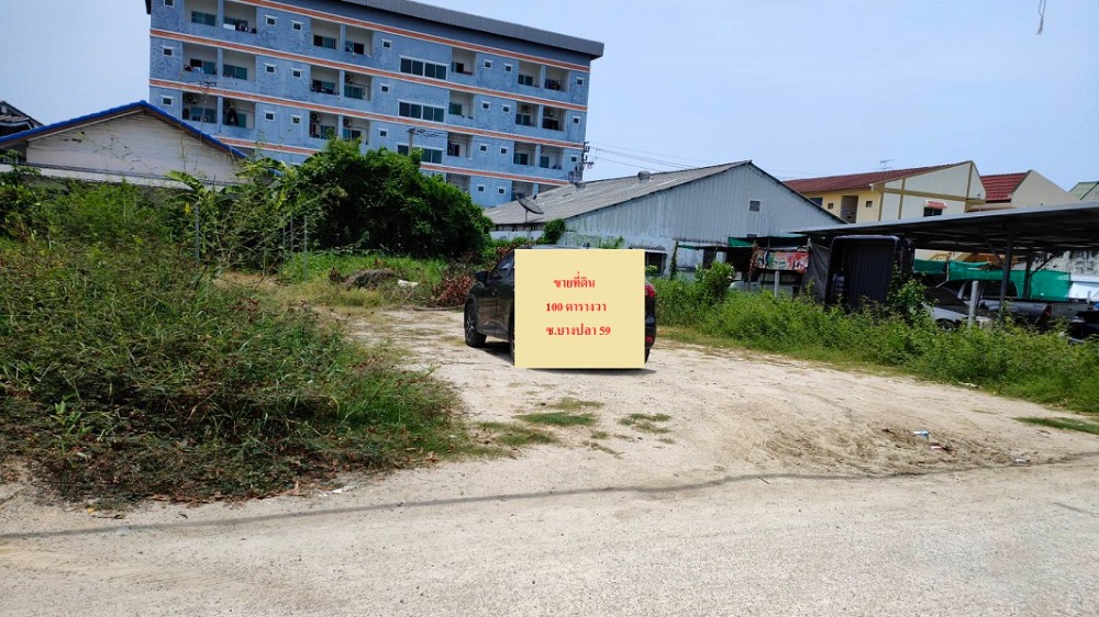 ขายที่ดินเปล่า 100 ตารางวา ซอยบางปลา 59 ถนนเทพารักษ์ ต.บางปลา อ.บางพลี จ.สมุทรปราการ เข้าซอยเพียง 280 เมตร ด้านหน้าติดถนนกว้าง 16 เมตร * ลึก 27 เมตร เหมาะสำหรับ ปลูกสร้างที่อยู่อาศัย หอพัก อพาร์ทเม้น
