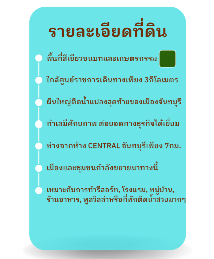 ทุกท่านคงทราบกันดีว่า... //"จันทบุรี คือ เมืองที่มั่งคั่งทุกฤดูกาล//"และมีชัยภูมิที่โดดเด่นทุกด้าน เป็นเมืองมีทรัพย์ในดินสินในน้ำอุดมสมบูรณ์ ไม่ว่าจะหน้าผลไม้ เช่นทุเรียน มังคุด หรือจะเป็นอัญมณีใต้ดินที่เพียบพร้อม แถมยังมีทะเลที่สวยงาม อากาศที่เย็นสบาย ที่ดินของเมืองจันทบุรี จึงมีราคาที่สูงมากๆ และ ยิ่งมากขึ้นไปอีก เมื่อมี Central มาลงเมื่อไม่นานมานี้ . . และแน่นอนว่า... ที่ดินที่สุดจะหายากที่สุดในเมืองจันก็คือ... //"ที่ดินติดแม่น้ำ//" ซึ่งหาได้ยากและมีราคาทั่วไป อยู่ที่ไร่ละ 6 - 15 ล้านไปแล้วในขณะนี้!! . . แต่ข่าวดีสำหรับท่านที่สนใจจริงๆ!! เราแบ่งขายที่ดินติดแม่น้ำจันทบุรี (โฉนด) วิวภูเขา กลางเมือง จันทบุรี ขนาดที่ดินแปลงละ 9ไร่ 10.2 ตรว. ขายไร่ละ 3.2 ล้าน (จำกัด 2 แปลงเท่านั้น!) . . ✅ รับชมที่ดินแบบ 360 องศา : https://www.thebangkokestate.com/chanthaburi-riverside-agc1 . . ✅ จุดเด่น - ติดแม่น้ำ วิวภูเขา กลางเมืองจันทบุรี - ทิศเหนือติดแม่น้ำ 55 เมตร ลึก 265 เมตร - มีไฟฟ้า 3 เฟส พร้อมน้ำประปาหน้าที่ดิน - ใกล้ Central , Robinson , Big C , เพียง 10 นาที - ทิศใต้ติดถนนสาธารณะ - ถนนคอนกรีตกว้าง 12 เมตร - อยู่ในละแวกชุมชนและเข้าออกได้หลายทาง - ที่ดินถมแล้ว มีไฟฟ้า พร้อม้ำประปา หน้าที่ดิน - โรงเรียน สถานที่ราชการสำคัญเพียง 5 นาที - อยู่ในละแวกชุมชนและเข้าออกได้หลายทาง - ใกล้ เซ็นทรัล โรบินสัน บิ๊กซี จันทบุรี เพียง 10 นาที - การเดินทางสะดวก เข้าออกได้หลายทาง อยู่ไม่ไกลจากตัวเมือง ขับรถเพียง 5 นาที . . ✅ เหมาะสำหรับ - เก็งกำไร - ปลูกบ้านพักอาศัย - ปลูกบ้านพักตากอากาศ - โรงแรม รีสอร์ท พูลวิลล่า - ลงทุนอสังหาริมทรัพย์ . . #ขอย้ำอีกทีนะครับว่า... ที่ดินที่สุดจะหายากที่สุดในเมืองจันก็คือ... //"ที่ดินติดแม่น้ำ//" ซึ่งหาได้ยากและมีราคาทั่วไป อยู่ที่ไร่ละ 6 - 15 ล้านไปแล้วในขณะนี้!! . แต่ข่าวดีสำหรับท่านที่สนใจจริงๆ!! เราแบ่งขายที่ดินติดแม่น้ำจันทบุรี (โฉนด) วิวภูเขา กลางเมือง จันทบุรี ขนาดที่ดินแปลงละ 9ไร่เศษ ขายไร่ละ 3.2 ล้าน (จำกัด 2 แปลงเท่านั้น!) . . ✅ สำหรับนายหน้าหรือนักลงทุนท่านใด ที่สนใจ! รับนายหน้า 3% ☎️ สอบถามข้อมูลได้ที่ : คลิกเพื่อดูเบอร์โทรติดต่อ (คุณอาร์ต) ☎️ ไลน์ : https://line.me/ti/p/sLUP_jnVN3 . . ✅ รับชมที่ดินแบบ 360 องศา : https://www.thebangkokestate.com/chanthaburi-riverside . แผนที่ : 📌 https://goo.gl/maps/pwhvJNVyn5u6fSR36