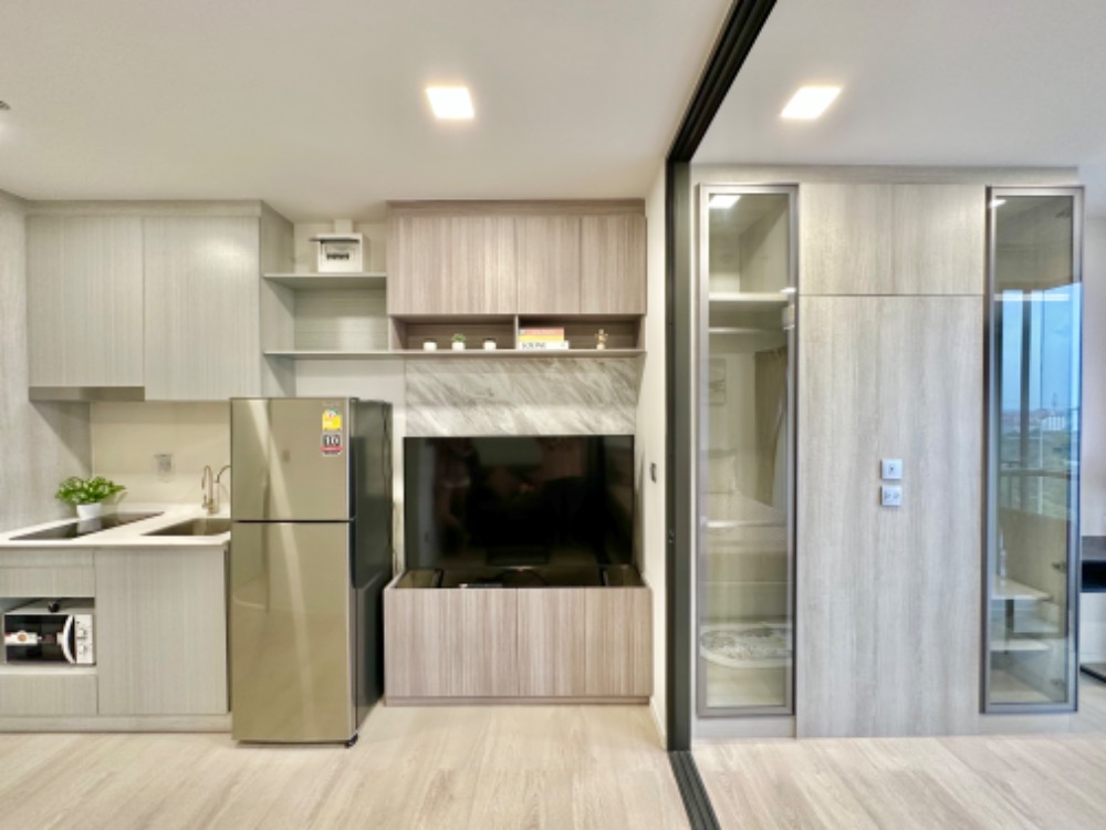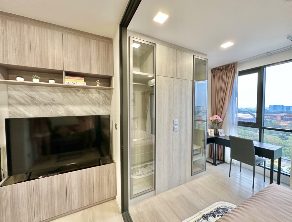 Modiz Launch มธ. ตึก Highrise โครงการเดียวที่อยู่ระหว่างประตู 1 และ ประตู 2 ของ ม.ธรรมศาสตร์ รังสิต ทำเลดีเดินเข้า-ออกมหาวิทยาลัยได้ง่าย ใกล้แหล่งของกินและร้านอาหาร เดินทางสะดวก ปลอดภัย พร้อมด่วนส่วนกลางของโครงการแบบจัดเต็มที่สุดในย่าน ห้อง 1-bed ขนาด 26 ตร.ม. มีผนังกระจกกั้นแยกระหว่างห้องนั่งเล่นและห้องนอน Fully Furnished แต่งครบ • TV Samsung ขนาด 55 นิ้ว • ตู้เย็น Toshiba แบบ 2 ประตู • เครื่องซักผ้า LG 15 kg • เครื่องทำน้ำอุ่น Sharp • ไมโครเวฟ Toshiba • แอร์ Daikin Inverter • โซฟา • เตียงพร้อมที่นอน pocket sping อย่างดี • ตู้เสื้อผ้าแบบ built-in • ชั้นวาง TV พร้อมชั้นวางของแบบ built-in • ชั้นวางรองเท้า • เคาน์เตอร์ครัว พร้อมเตาไฟฟ้า และเครื่องดูดควัน • โต๊ะอ่านหนังสือพร้อมเก้าอี้ • เครื่องกรองน้ำ อัตราค่าเช่า 18,500 บาท สัญญา 1-2 ปี เงินประกัน 2 เดือน จ่ายล่วงหน้า 1 เดือน สนใจสอบถามเพิ่มเติม และนัดดูห้องจริงได้นะครับ เจ้าของปล่อยเช่าเอง ขออนุญาตยังไม่รับเอเจ้นท์นะครับ สนใจติดต่อ คลิกเพื่อดูเบอร์โทรติดต่อ Line ID : pop.wp