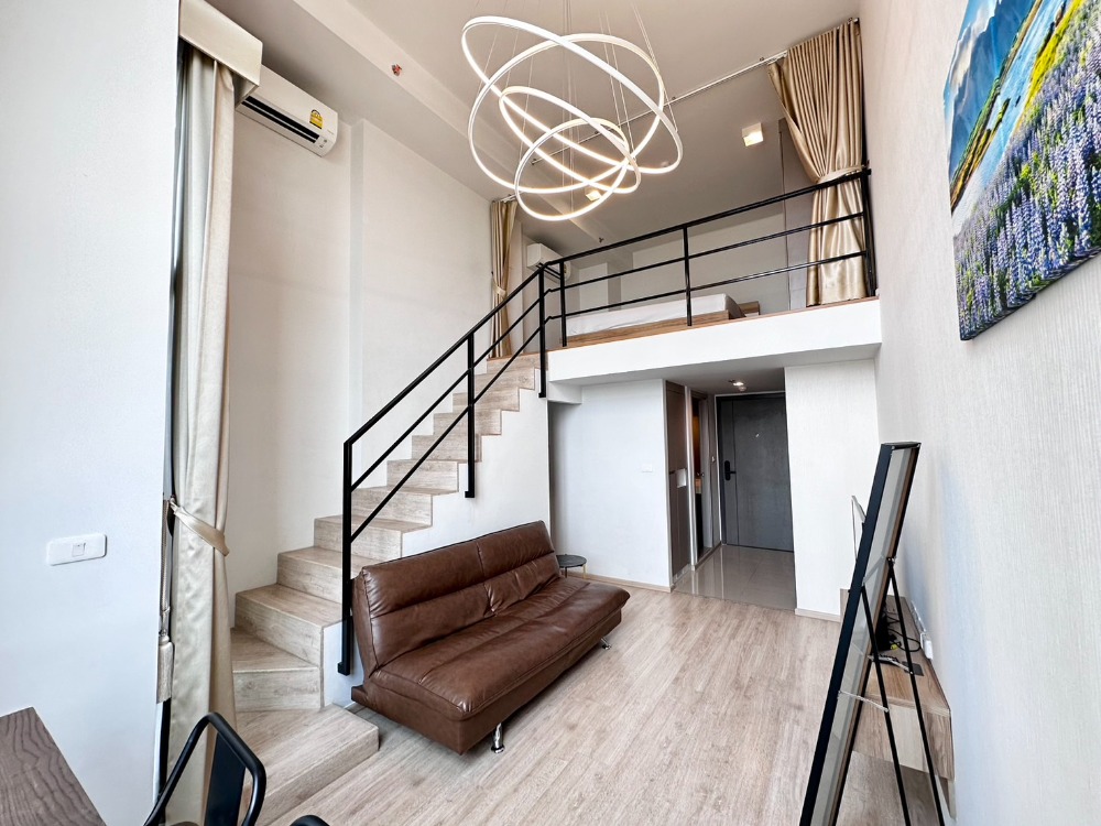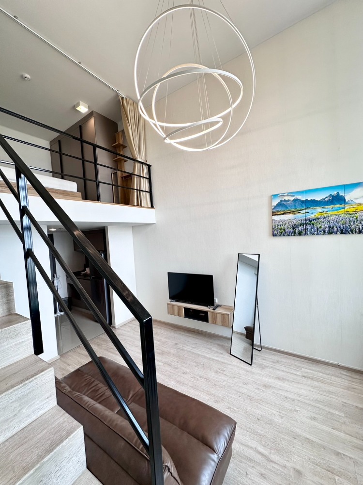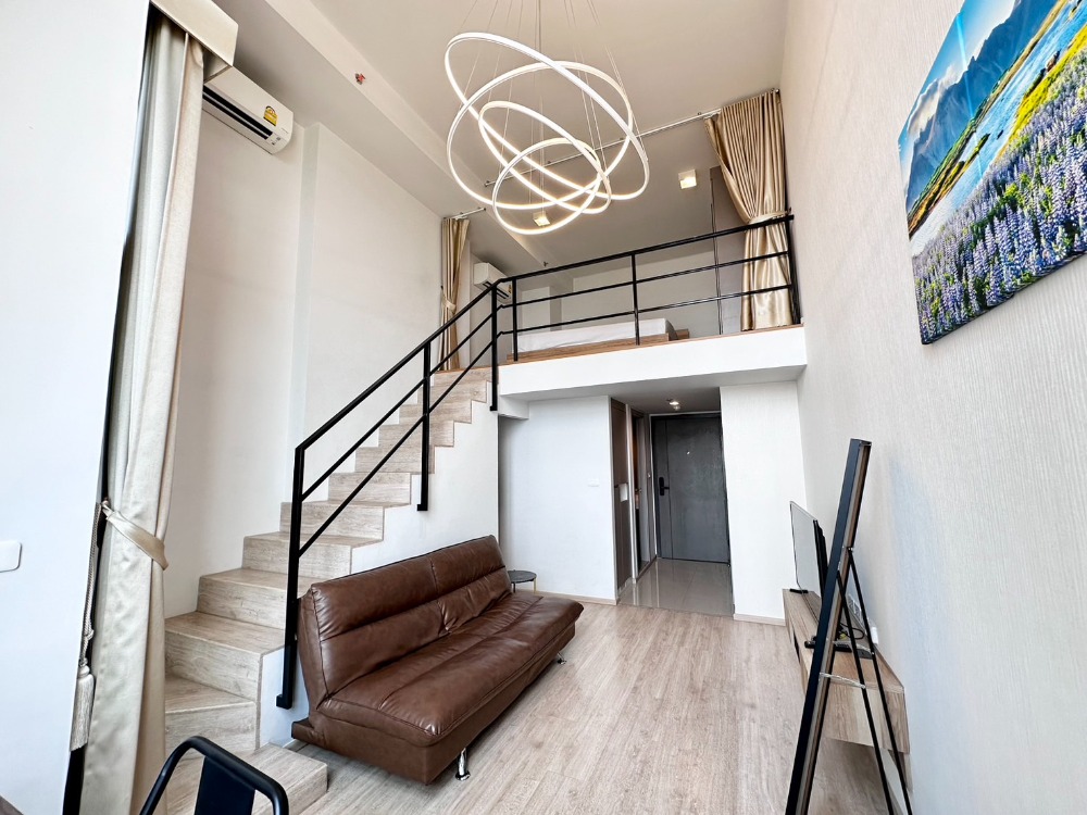 ห้เช่า✨ไอดีโอ นิว พระราม 9💎 ✔️ห้อง Duplex ขนาด 37 ตรม. (รวมพื้นที่ชั้นบน) ชั้น19 ✔️เฟอร์นิเจอร์และเครื่องใช้ไฟฟ้าครบ / แอร์ 2 เครื่อง, ทีวี, โซฟา, เตียง, ตู้เสื้อผ้า, ตู้เย็น, ไมโครเวฟ, เครื่องน้ำอุ่น