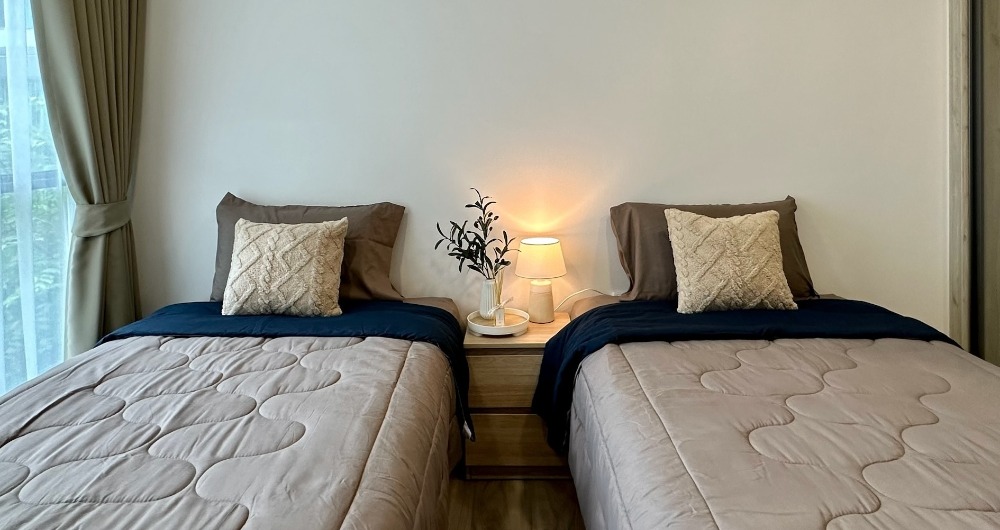 OVERVIEW ชื่อโครงการ : Kave Mutant Salaya (เคฟ ศาลายา) ขนาดห้อง : 29 ตารางเมตร 1 ห้องนอน - 1 ห้องน้ำ - 1 ห้องนั่งเล่น และพื้นที่ทำครัว สถานะห้อง : พร้อมอยู่ ที่ตั้งห้อง : A322 อาคาร A ชั้น 3 (ชั้นเดียวกับ Facilities โครงการ) , วิวสวน ทิศตะวันออก ห้องมุม บรรยากาศร่มรื่น มีต้นไม้สูงใหญ่ ทัศนียภาพเริ่ด เงียบสงบ ห้องเย็นทั้งวัน อยู่ฝั่งตะวันออก รับแสงแดดยามเช้า อยู่ห้องมุม เดินไปยังส่วนกลางมุมติวหนังสือ โซนเอนเตอร์เทนได้เลย ไม่ไกลบันไดหนีไฟ ตึกเดินเชื่อมไปยังสระว่ายน้ำหรือฟิตเนสได้สบาย ๆ ความปลอดภัยสูง *** เจ้าของห้องปล่อยเช่าเอง *** ราคาเช่า 12,000 บาท ต่อเดือน เมื่อทำสัญญา 1 ปี ขึ้นไป *** เข้าพักได้สูงสุด ผู้ใหญ่ 2 ท่าน ไม่อนุญาตเลี้ยงสัตว์ *** มัดจำล่วงหน้า 1 เดือน ประกัน 2 เดือน สิ่งอำนวยความสะดวกภายในห้อง - ประตูระบบดิจิทัล - Digital Bluetooth Speaker - เครื่องปรับอากาศ, ตู้เย็น - เครื่องซักผ้า - ไมโครเวฟ, กาต้มน้ำไฟฟ้า - TV LED 40 สามารถเชื่อมต่อ Netflix, Disney, Internet, YouTube - เครื่องทำน้ำอุ่น - เตียงนอน SLUMBERLAND ขนาด 3.5 ฟุต 2 เตียง สามารถจัดเป็นเตียงเดี่ยวหรือเตียงคู่ได้ - ตู้เสื้อผ้าขนาด 4 บาน จุของได้เยอะ - โซฟา, ชั้นวาง TV, โต๊ะอาหาร, ชั้นอเนกประสงค์, ชั้นเก็บของ - โต๊ะทำงาน 1 จุด - ผ้าม่านกันความร้อน 2 ชั้น - ถังขยะ 2 จุด, ราวแขวนผ้า, ไม้แขวนเสื้อ - ชุดอุปกรณ์เครื่องครัว จาน ชาม ช้อนส้อม แก้วใส แก้ว กาแฟ สิ่งอำนวยความสะดวกภายในโครงการ - ห้องโถง Lobby ขนาดใหญ่ - ตู้รับจดหมายส่วนตัว Mail Box - ที่ทิ้งขยะเป็นระเบียงตามจุด - สระว่ายน้ำขนาดใหญ่มาตรฐาน ระบบเกลือ พร้อมระบบสปา - ห้องฟิตเนส อุปกรณ์ครบครัน - บริการซักรีด ทำความสะอาดห้อง - สวนธรรมชาติร่มรื่น พร้อมที่นั่งพักผ่อน - ส่วนกลางอาทิ ห้องทำครัว ห้องดูหนัง มิวสิคสตูดิโอกว่า 32 กิจกรรม - ระบบป้องกันอัคคีภัย Smoke & Heat Detector และ Fire Alarm - ที่จอดรถประมาณ 45% จอดในที่ร่ม ไม่รวมซ้อนคัน - มีรถรับส่งไปยังมหาวิทยาลัยมหิดล - ระบบรักษาความปลอดภัย ตลอด 24 ชั่วโมง - กล้องวงจรปิดทั้งภายใน-นอกตัวอาคาร ตลอด 24 ชั่วโมง - คีย์การ์ด เข้า-ออก ตัวอาคารและนอกโครงการ จุดเด่นพิเศษโครงการ - ติดร้านอาหารตามสั่ง ร้านย่างเนย Casa Lapin หาของกินสะดวก 24 ชม. - ใกล้คลินิกทันตกรรม และร้านอาหารยุโรป อาหารไทย อาหารเวียดนาม - ระยะทางจากกรู๊ฟ มาร์เก็ต ศาลายา 600 เมตร - ระยะทางจากแม็คโคร ศาลายา 700 เมตร - ระยะทางจากโรงเรียนมหิดลวิทยานุสรณ์ 700 เมตร - ระยะทางมหาวิทยาลัยมหิดล ศาลายา 750 เมตร - ระยะทางจากวิทยาลัยนาฏศิลป สถาบันบัณฑิตพัฒนศิลป์ 1.1 กิโลเมตตร - ระยะทางจากวิทยาลัยนานาชาติ ม.มหิดล 1.2 กิโลเมตร - ระยะทางจากวิทยาลัยดุริยางคศิลป์ 3 กิโลเมตร - ระยะทางจากตลาดศาลายา 1.7 กิโลเมตร - ระยะทา