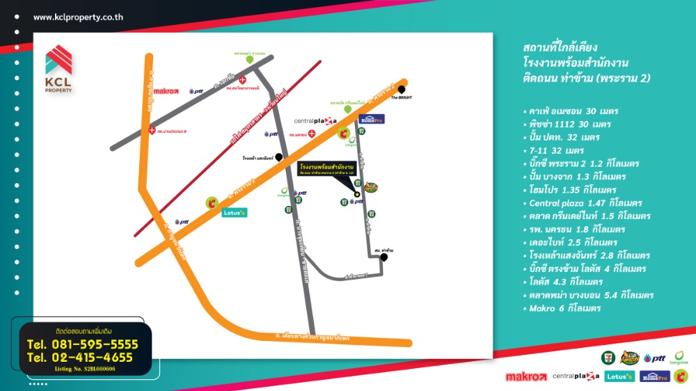ขายที่ดินพร้อมโรงงาน+สำนักงาน+อาคารพักอาศัย อยู่ปากซอยท่าข้าม 12 เนื้อที่ : 3-0-3.5 ไร่ หน้ากว้าง 160 เมตร ลึก 33 เมตร 💥จุดเด่น: ✅อยู่ปากซอยติดถนนท่าข้าม ✅มีใบอนุญาติโรงงาน(ไม่ต้องขอใหม่) ✅รถบรรทุกขนาดใหญ่สามารถเข้า-ออก ได้ ✅มีการขออนุญาติใช้ไฟฟ้าแบบโรงงาน 3 เฟส ✅อาคารพร้อมใช้งานทุกส่วน 🗂รายละเอียด : มีทั้งหมด 4 ส่วน 👉ส่วนที่ 1: อาคารพักอาศัย 5 ชั้น รวมดาดฟ้า (มีลิฟท์ 1 ตัว) ชั้นที่ 1 : มี 3 ห้อง ชั้นที่ 2 : มี 4 ห้อง ชั้นที่ 3 : มี 4 ห้อง ชั้นที่ 4 : มี 4 ห้อง ชั้นที่ 5 : ห้องพระรวมดาดฟ้า 👉ส่วนที่2: โรงจอดรถ โรงจอดรถ สามารถจอดรถได้ประมาณ 15-20 คัน 👉ส่วนที่ 3: อาคารโรงงาน/สำนักงาน สำนักงาน 2 ชั้น ชั้นที่ 1 : ห้องทำงาน 4 ห้อง/1 ห้องครัว/ห้องน้ำ(แยกชาย-หญิง) ชั้นที่ 2 : ห้องทำงาน 5 ห้อง/1 ห้องประชุมใหญ่/1 ห้องประชุมเล็ก สามารถเดินทะลุตัวโรงงานชั้นที่ 2 (ชั้นลอย)ได้ อาคารโรงงานมีชั้นลอยทั้งสองฝั่งเชื่อมกับออฟฟิตชั้นที่ 2 👉ส่วนที่ 4: อาคารที่พักอาศัย 2 ชั้น 📍สถานที่ตั้ง Location :https://goo.gl/maps/fGR8quctdTfGJk5s5 ราคา 135,000,000 บาท 📍สถานที่ใกล้เคียง : – ถ.พระราม 2 – ถ.บางขุนเทียน-ชายทะเล – บิ๊กซี (พระราม 2) – โฮมโปร (พระราม 2) – ถ.กาญจนภิเษก – ทางด่วนพิเศษดาวคะนอง(เฉลิมมหานคร) สอบถามรายละเอียดเพิ่มเติมได้ที่ คุณเค้ก Tel. คลิกเพื่อดูเบอร์โทรติดต่อ หรือ คลิกเพื่อดูเบอร์โทรติดต่อ Line: @kclproperty หรือคลิ๊กที่นี่ https://page.line.me/kclproperty ติดตามเพจ : https://www.facebook.com/adminkclproperty เว็ปไซต์ : https://kclproperty.co.th/
