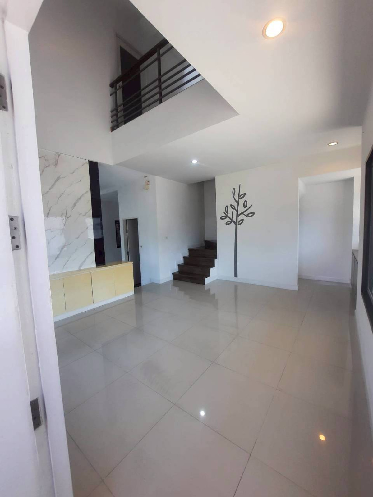 บ้านแฝดที่ดินหน้ากว้าง ห้องมุม ทั้งหมด 3 ชั้น ด้านหน้าใกล้ป้อม รปภ. 5 ห้องนอน 4 ห้องน้ำ ที่จอดรถ 2 คัน พร้อมพื้นที่ ด้านข้างบ้าน ชั้น 1 ปูกระเบื้อง แบ่งพื้นเป็นstep เพื่อแยกโซนห้องกินข้าวกับห้องรับแขก