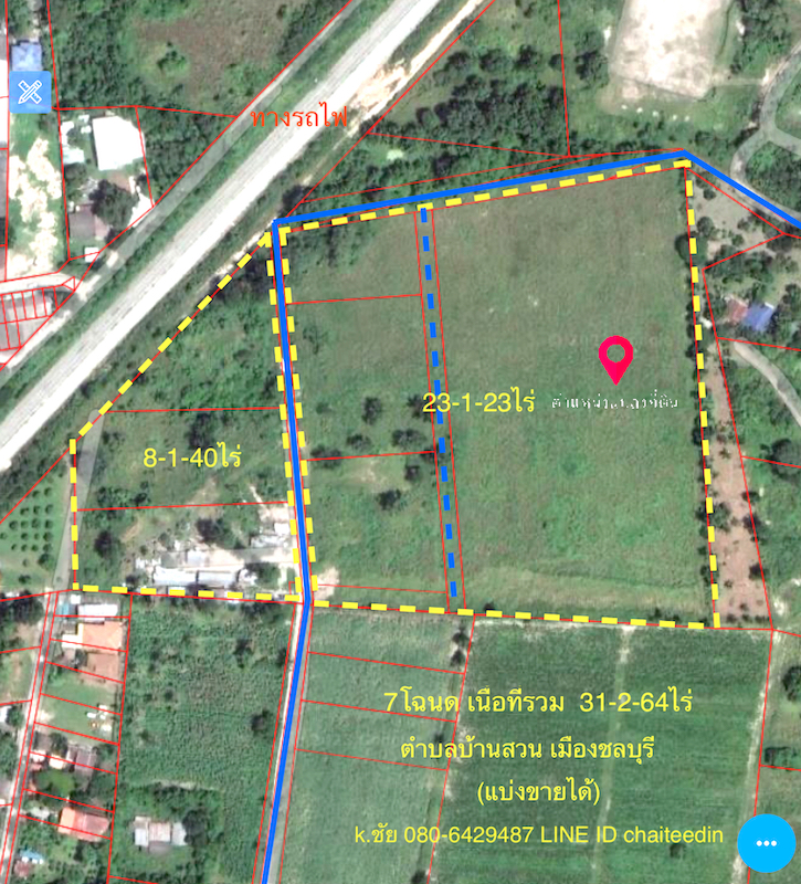 ขายที่ดินในเมืองชลบุรี บ้านสวน เนื้อที่ 31.5ไร่ใกล้ถนนบายพาสเลี่ยงเมืองชลบุรี ใกล้โลตัลบ้านสวน ห่างจากถนนเลี่ยงเมืองชลบุรี 800เมตร เหมาะพัฒนาเป็นโกดังเก็บสินค้า หรือ พัฒนาเป็นที่พักอาศัย ราคาไร่ละ 5 ล้าน แบ่งขายได้ สนใจสอบถามรายละเอียด ติดต่อคุณชัย คลิกเพื่อดูเบอร์โทรติดต่อ LINE ID chaiteedin #เพจ https://web.facebook.com/chaiteedin ขายที่ดินสวย สภาพแวดล้อมดี ทำเลเข้าออกสะดวก เข้าออกได้หลายทาง ราคาต่อรองได้ ต้องการพิกัดแผนที่ หรือ ข้อมูลเพิ่มเติม แชท/โทร มาคุยได้