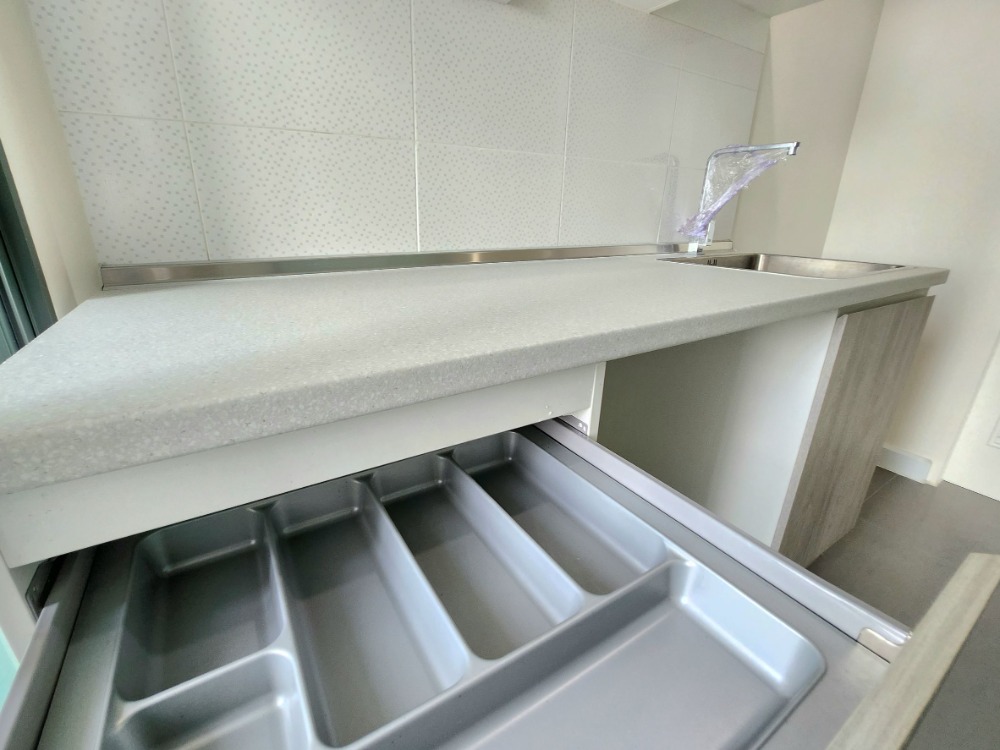ขายด่วน คอนโด เมโทร สกาย ประชาชื่น Metro Sky Prachachuen แบบ 1 ห้องนอน 27 ตารางเมตร ตึก A ชั้น 10 รีโนเวทใหม่ทั้งห้อง - เปลี่ยนพื้นใหม่เป็น SPC ทนน้ำ ดูแลง่าย ดีกว่าลามิเนทแบบเดิมมาก - ติดวอลเปเปอร์ให