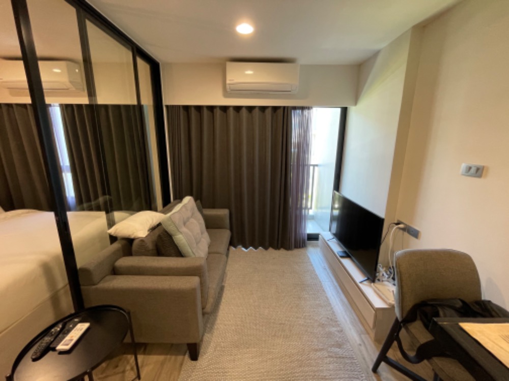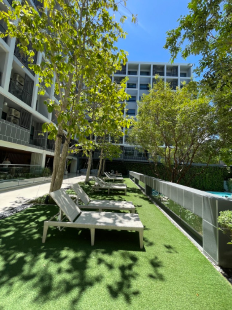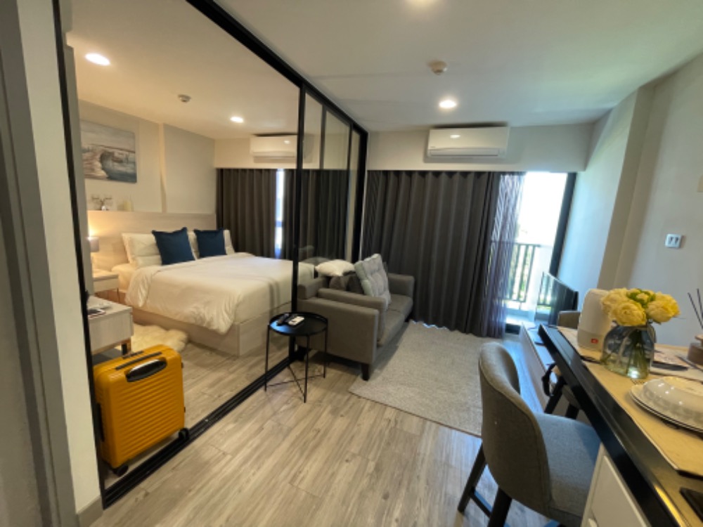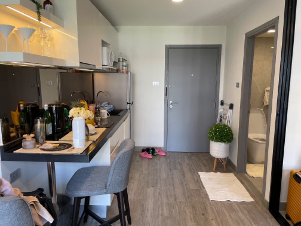 ห้องขนาด : 30 ตรม แบบ 1 ห้องนอน 1 ห้องนั่งเล่น วิวสวย ไม่บล็อค มองเห็นสวนของโครงการ สระว่ายน้ำโครงการ เจ้าของซื้อไว้ตากอากาศมาปีละ 2-3 ครั้ง ห้องสภาพใหม่มาก เครื่องใช้ไฟฟ้าครบ ประกอบด้วย แอร์ 2 เครื่อง ตู้เย็น 1 เครื่อง ระบบทำน้ำร้อนน้ำเย็นเหมือน รร 5 ดาว ชุดเคาเตอร์ครัวพร้อมเตาไฟฟ้า build in ที่นั่งรับประทานอาหาร Smart TV ฟูกที่นอน Sofa furniture พร้อมเข้าอยู่ได้เลย