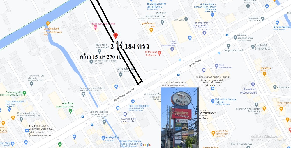ขายที่ดิน 2 ไร่ 184 ตรว. ติดถนน รามคำแหง ตรงข้าม สัมมากร เพลส