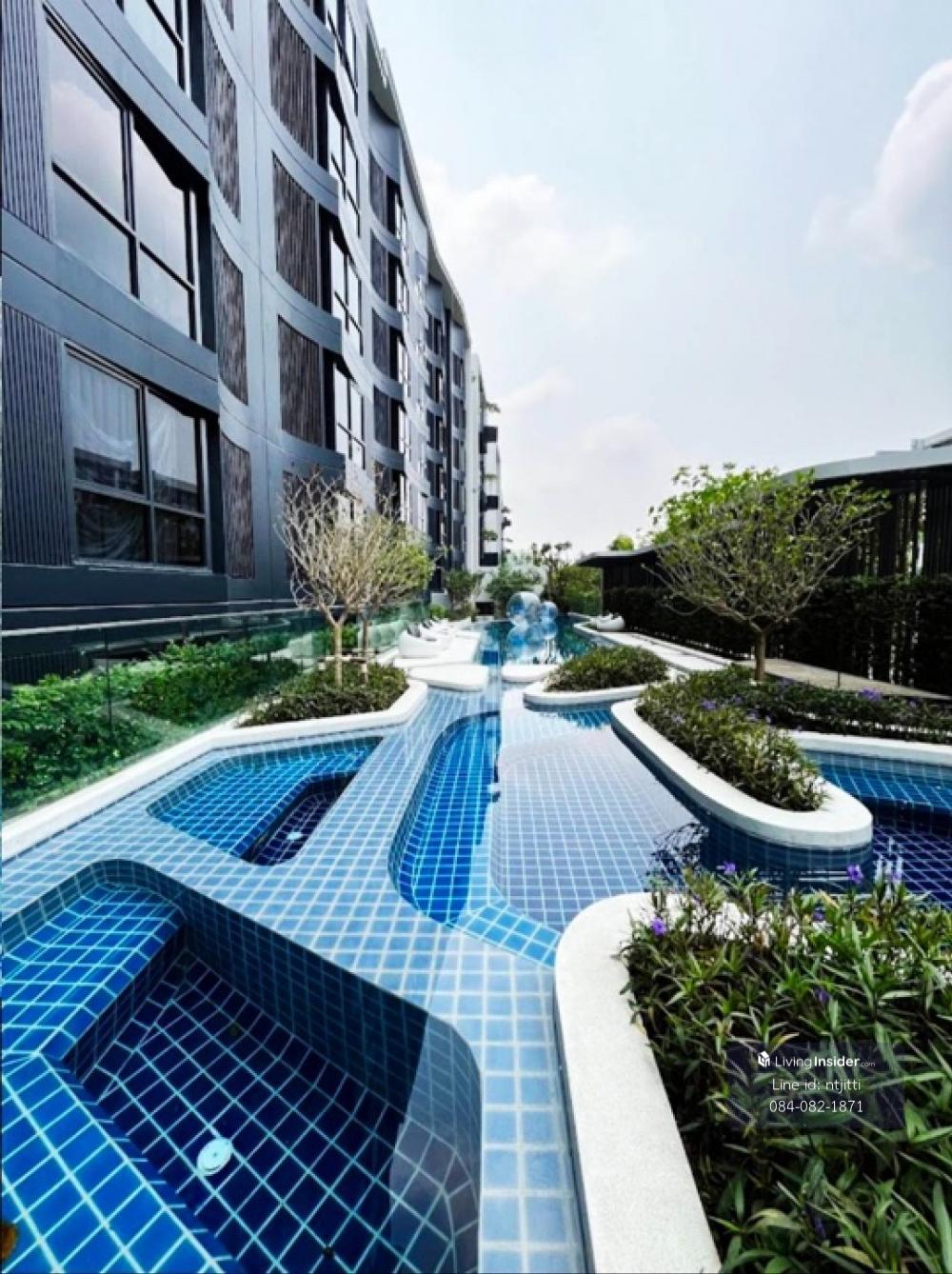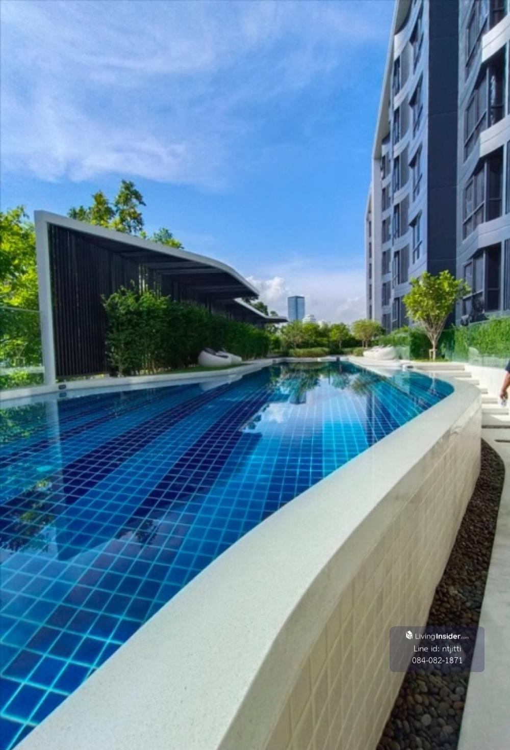 คอนโดให้เช่า Blue Condo สุขุมวิท 105 วิวสระว่ายน้ำ สวนส่วนกลางขนานตัวอาคาร ห้องอยู่ชั้น 3 ปากซอยใกล้ BTS แบริ่ง และท้ายซอยใกล้ MRT ศรีลาซาล