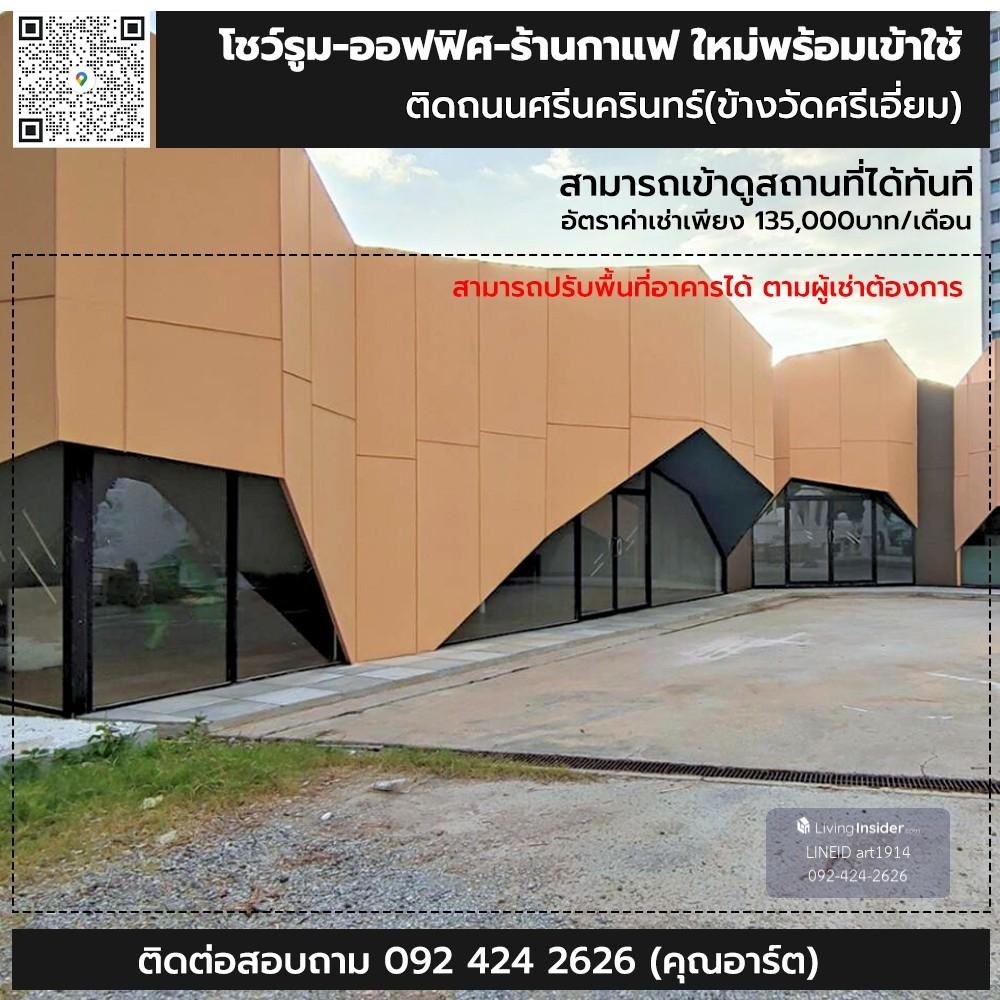 โชว์รูม-ออฟฟิศ-ร้านกาแฟ ใหม่พร้อมเข้าใช้ ติดถนนศรีนครินทร์ ย้ำ ติดถนน ข้างวัดศรีเอี่ยม ใกล้ๆเซนทรัลบางนา ย่านกำลังซื้อสูง รถผ่านเยอะมาก เหมาะเป็นโชว์รูม คาเฟ่ ออฟฟิศ ปล่อยเช่า อาคารสร้างใหม่ พื้นที่ภา