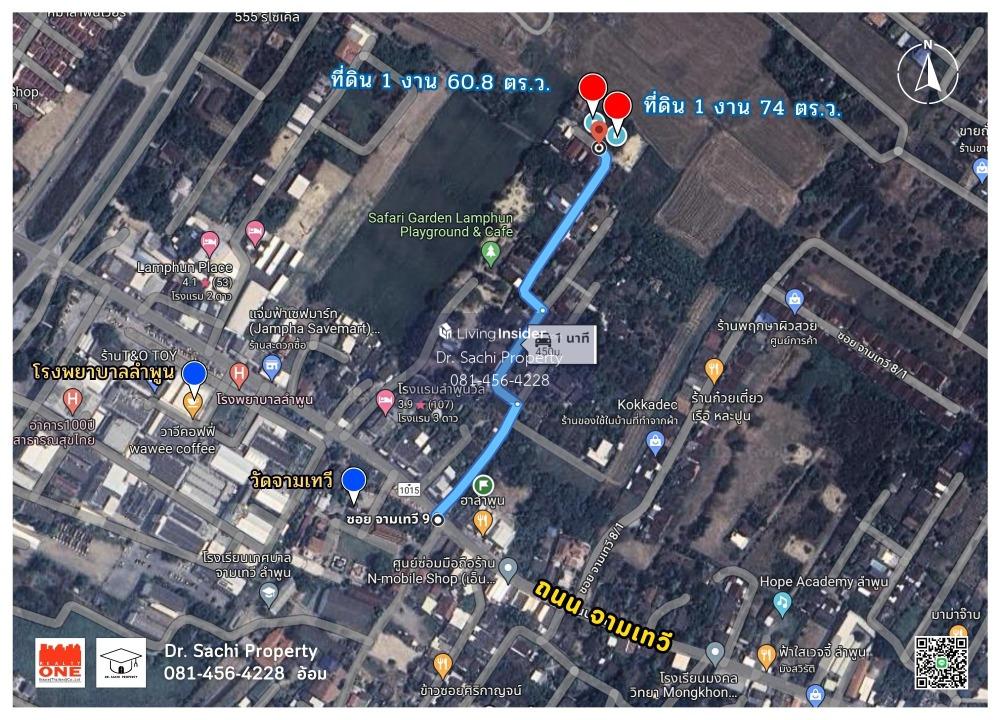 Property ID : M03497 ที่ดินแปลงสวย ตัวเมืองลำพูน เหมาะปลูกบ้าน บรรยากาศดี วิวทุ่งนา - เนื้อที่ 1 งาน 60.8 ตร.ว. (21x34 เมตร) - ที่ดินหัน ทิศตะวันตกเฉียงใต้ - ที่ดินติด ถนนลาดยาง ถนนซอยกว้าง 5 เมตร - ผังเมือง สีเหลือง -------------------------------------------------------- : : ลักษณะเด่น : : - ทำเลดี ถนนซอยกว้าง เข้า-ออก สะดวก จากถนนหลักเข้ามาเพียง 450 เมตร - ใกล้แหล่งชุมชน น้ำประปา-ไฟฟ้า เข้าถึง - เหมาะทำที่พักอาศัย โฮมสเตย์ หอพัก อพาทเมนต์ คาเฟ่ ร้านอาหาร ------------------------------------------------ สถานที่ตั้ง : : ถ.จามเทวี ซ.10 ต.เหมืองง่า อ.เมืองลำพูน จ.ลำพูน Google Map : : https://maps.app.goo.gl/fbJzf66DS1jFvzd97 ------------------------------------------------ : : สถานที่สำคัญใกล้เคียง : : - โรงพยาบาลลำพูน - วัดจามเทวี - โรงเรียนเทศบาลจามเทวี ลำพูน - วัดมหาวันวนาราม (พระรอด) - วิทยาลัยเทคนิคลำพูน - ตลาดสดหนองดอก - วัดพระธาตุหริภุญชัย - โรงเรียนจักรคำคณาทร - สนามบินลำพูน - สถานีรถไฟลำพูน ------------------------------------------------ ราคาขาย : : 2,400,000 บาท (ค่าใช้จ่ายการโอน ออกคนละครึ่ง) ------------------------------------------------ : : สอบถามรายละเอียดเพิ่มเติมติดต่อ : : คุณฌัชษชี ฌัชปภาส์มณ (อ้อม) Realty One Estate (Thailand) Co.,Ltd. (ในสังกัดสมาคมนายหน้าอสังหาริมทรัพย์ไทย) Tel : คลิกเพื่อดูเบอร์โทรติดต่อ LINE ID : dr.sachiproperty Facebook : Dr. Sachi Property