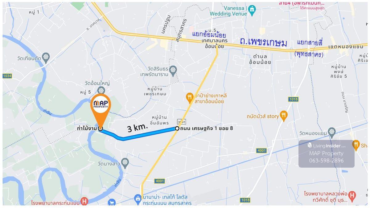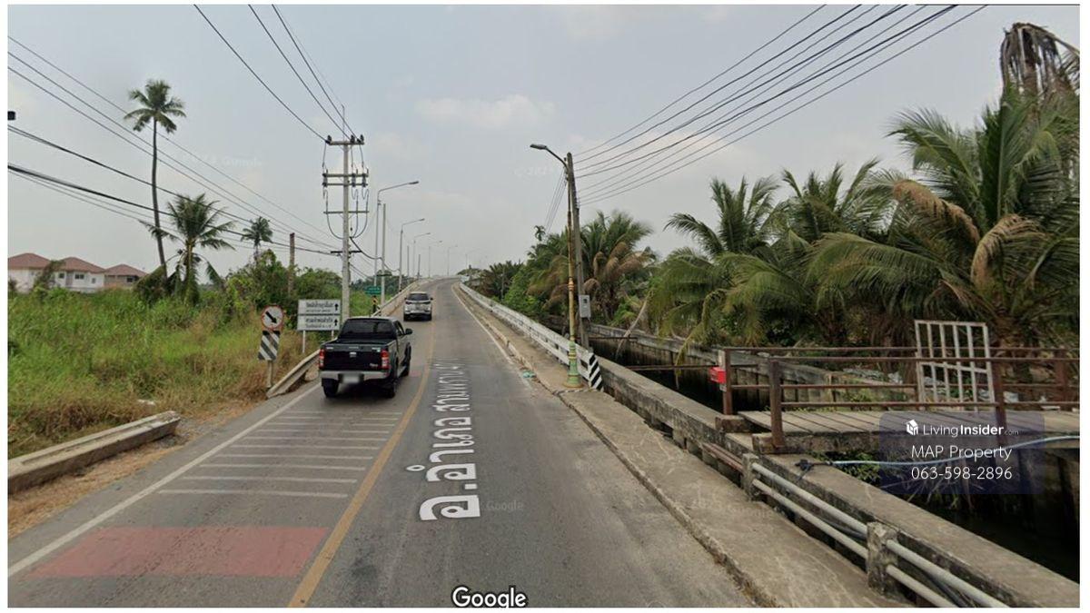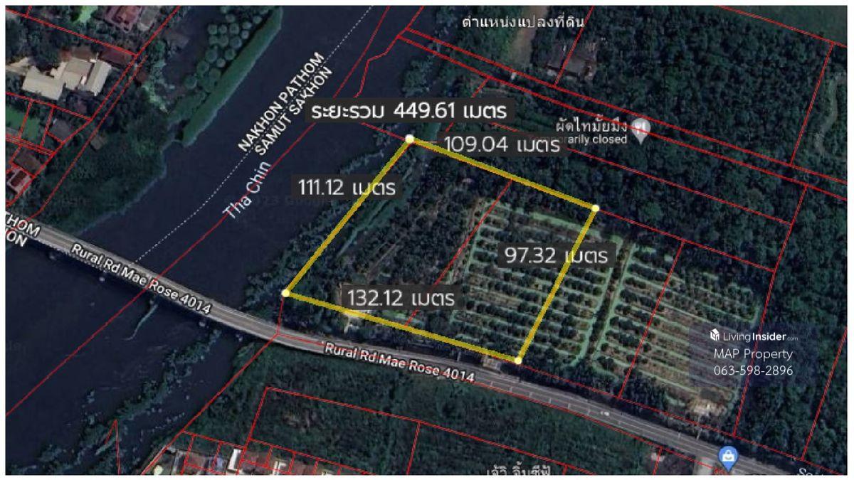 ที่ดินริมน้ำ ใกล้วัดท่าไม้ กระทุ่มแบน ที่ริมน้ำท่าจีนรูปสี่เหลี่ยม