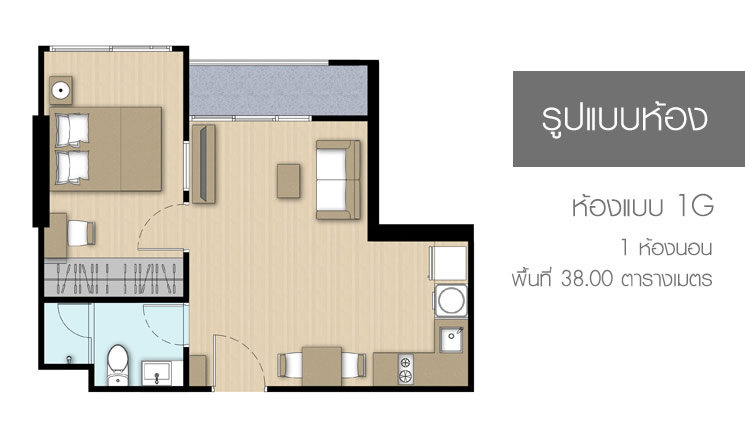 พื้นที่ใช้สอย 38.74 ตร.ม.