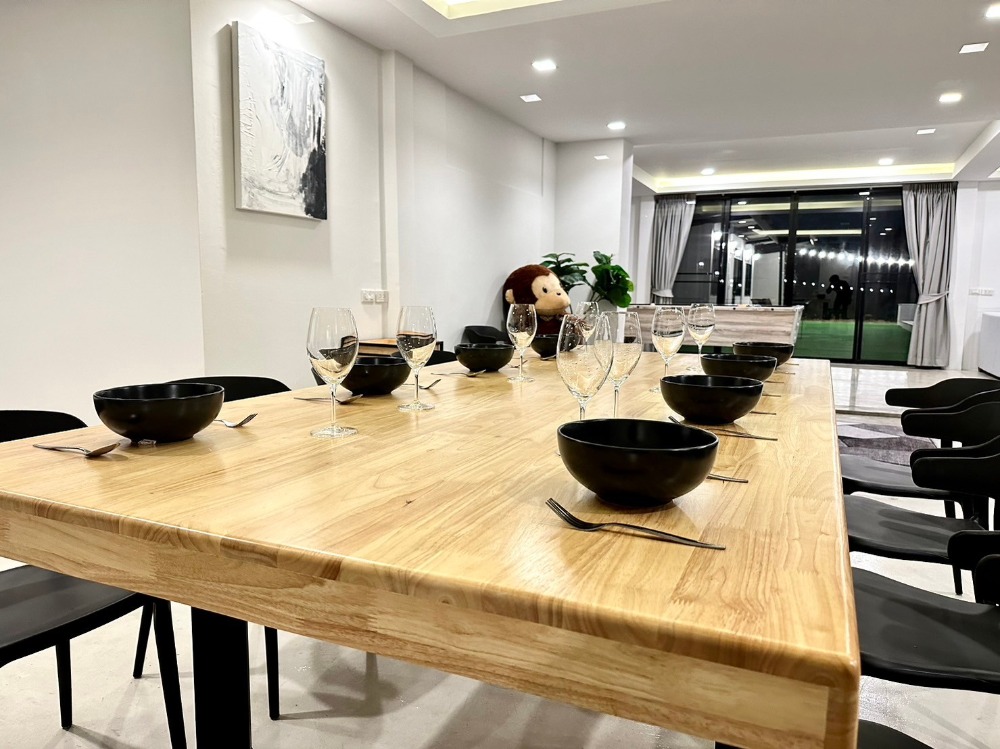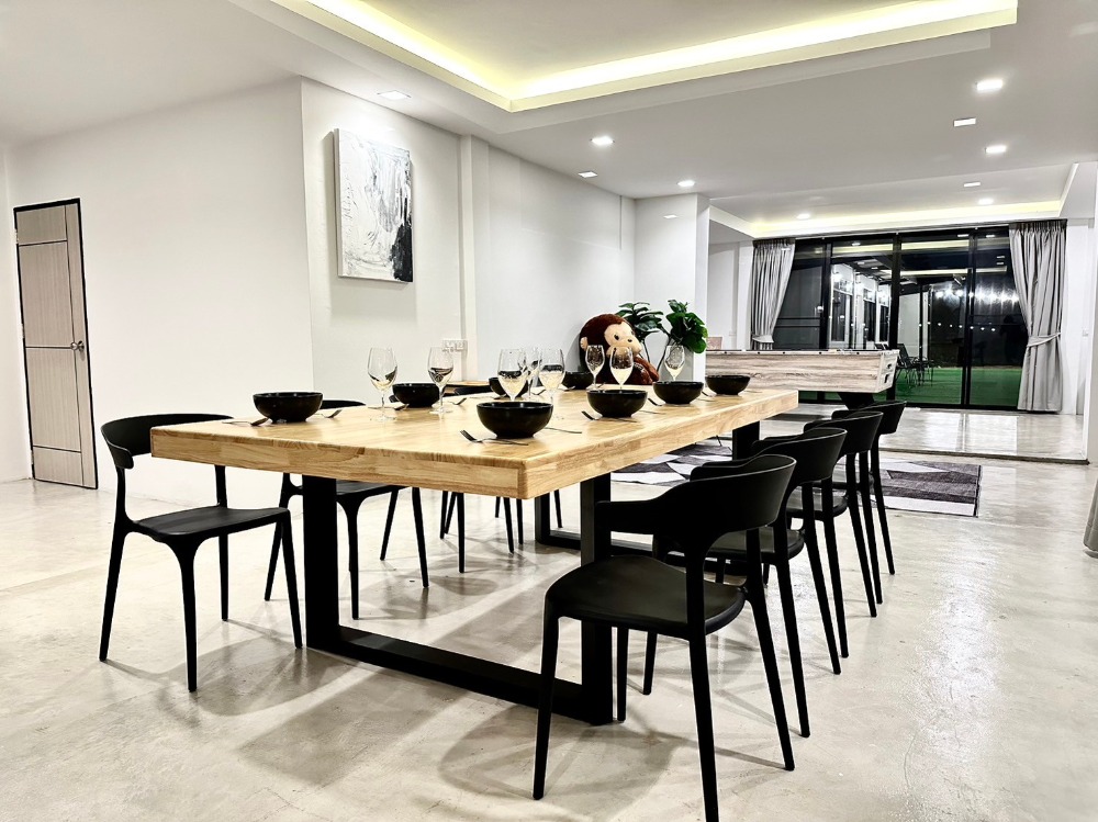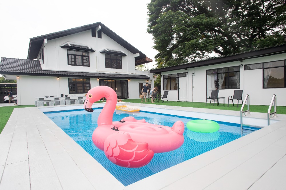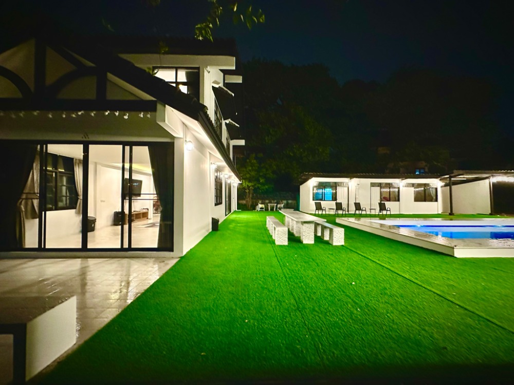 ยินดีต้อนรับสู่พูลวิลล่ากรุงเทพฯ บ้านพักตากอากาศที่ผ่อนคลายของเราตั้งอยู่ใจกลางกรุงเทพกรีฑา ซึ่งเป็นหนึ่งในย่านที่มีสงบรมรื่นที่สุดในกรุงเทพฯ พื้นโซนนี้เดินทางสะดวก เหมาะกับเป็นที่พักผ่อน ปาตี้ บาบีคิว หรือ ประชุมงาน โลเคชั่น : https://maps.app.goo.gl/SPphywnxinwaiFSH6 เกี่ยวกับที่พัก - ผ่อนคลายบ้านพักตากอากาศพื้นที่กว้าง กว่า 1ไร่ - ตั้งอยู่อย่างสะดวกสบายใกล้แหล่งช้อปปิ้งยอดนิยมร้านอาหาร - เดินทางสะดวกด้วยระบบขนส่งสาธารณะ - บรรยากาศเงียบสงบและผ่อนคลายเหมาะสำหรับการพักผ่อนอย่างสงบ - มีที่จอดรถได้สูงสุด 20 คัน บริเวณที่ใช้ได้ - โต๊ะพูลเพื่อความบันเทิง - พื้นที่ทำงานร่วมกับอินเทอร์เน็ตความเร็วสูง - วิลล่าสระว่ายน้ำที่สวยงามพร้อมเก้าอี้เลานจ์ที่สะดวกสบายและอาบแดด - โต๊ะประชุม ขนาด12 คน คลิกเพื่อดูเบอร์โทรติดต่อ ภูมิ