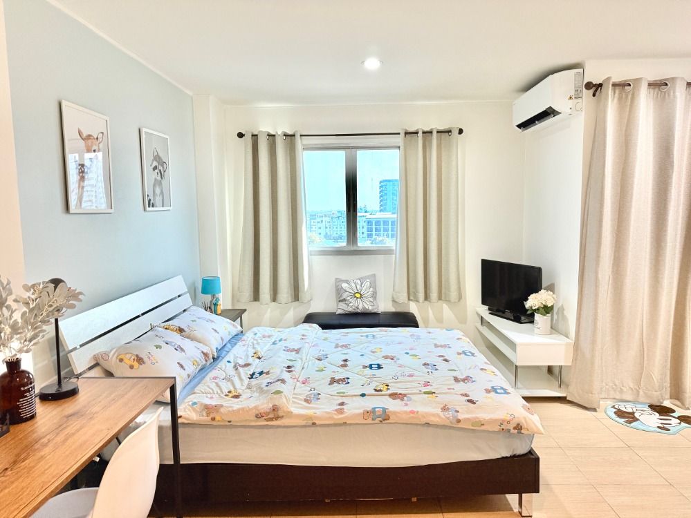 ให้เช่า ห้องคอนโดลุมพินี รามอินทรา กม.8 ตึก D ชั้น 6 ห้องสตูดิโอ 22 ตรม. ห้องสวยรีโนเวทใหม่พร้อมอยู่ ราคา 6,200 บาท/เดือน สัญญา 1 ปี มัดจำ 2 เดือน ล่วงหน้า 1 เดือน (18,600 บาท) เฟอร์นิเจอร์ เตียง 5 ฟุต , ตู้เสื้อผ้า, โต๊ะทำงาน, โต๊ะวางทีวี เครื่องใช้ไฟฟ้า ทีวี, แอร์ ตู้เย็น เครื่องทำน้ำอุ่น, ไมโครเวฟ คอนโดมีทางเข้าออก 2 ทางทั้ง ถนน นวมินทร์ และ รามอินทรา ใกล้ โรงพยาบาลสินแพทย์ ห้างแฟชั่นไอส์แลนด์ ภายในคอนโดมีร้านค้าสะดวกซ์้อครบครันทั้ง ร้านอาหาร ร้านเซเว่น ร้านซักรีด ร้านทำผม ร้านซักผ้า ร้านขายสินค้า