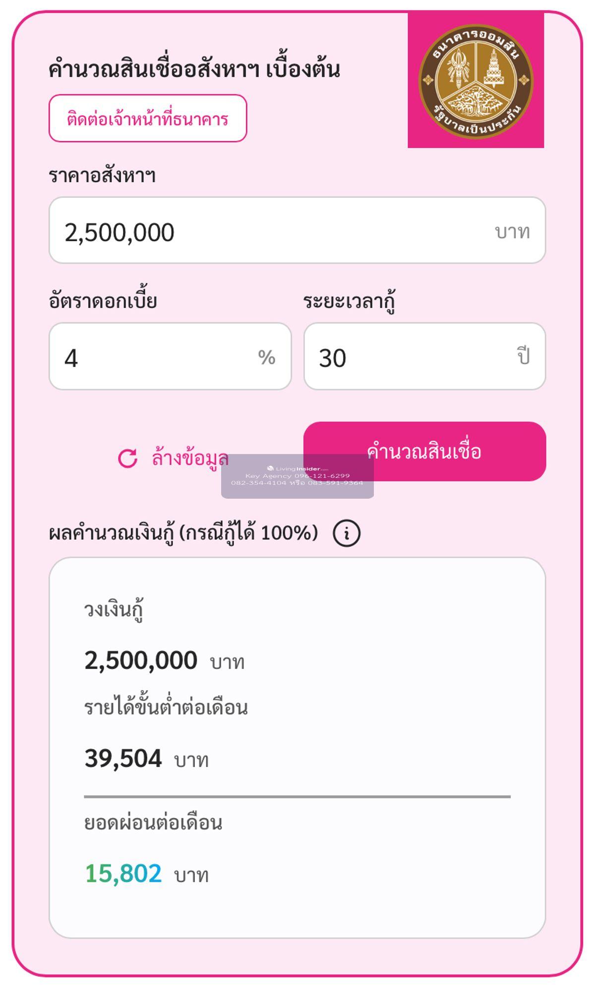 คำนวณสินเชื่ออสังหาฯ เบื้องต้น