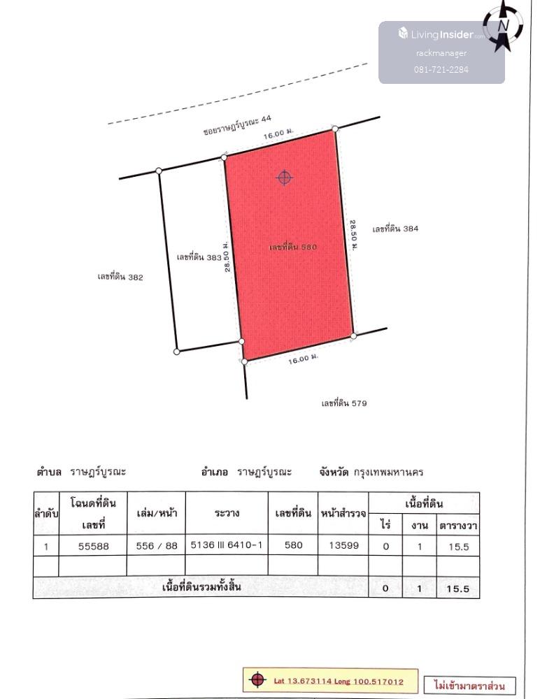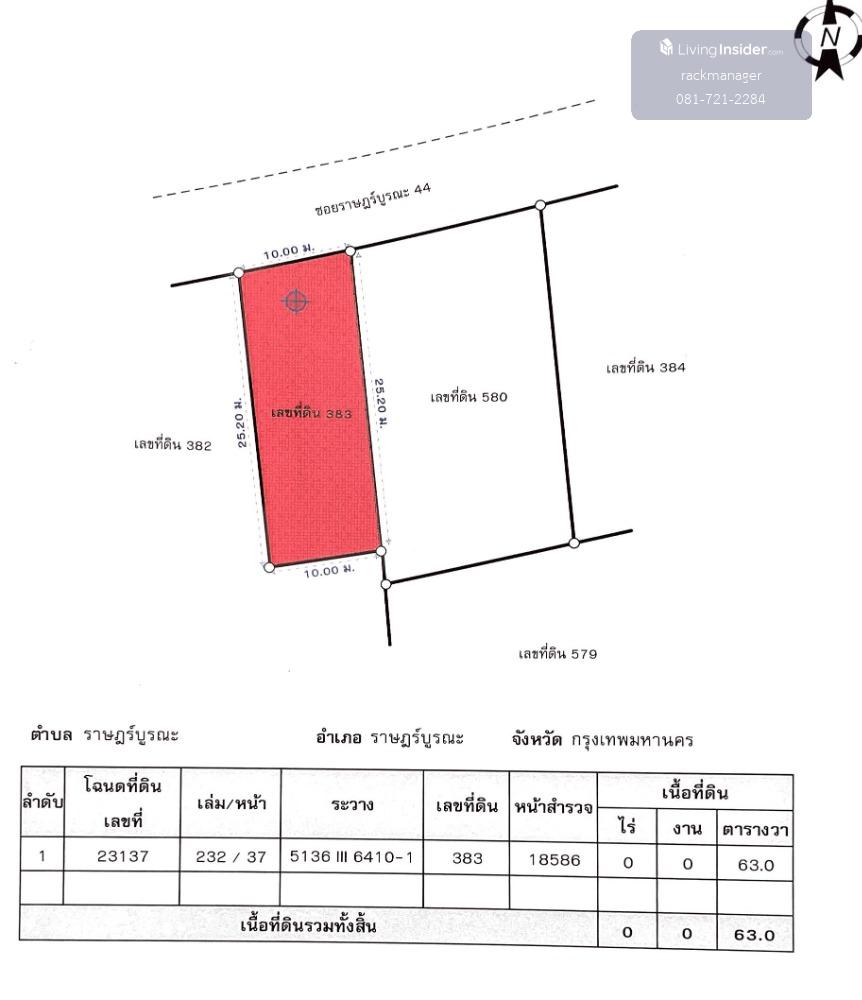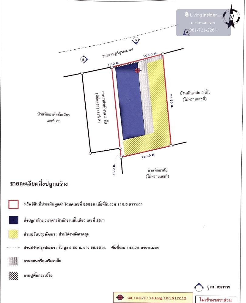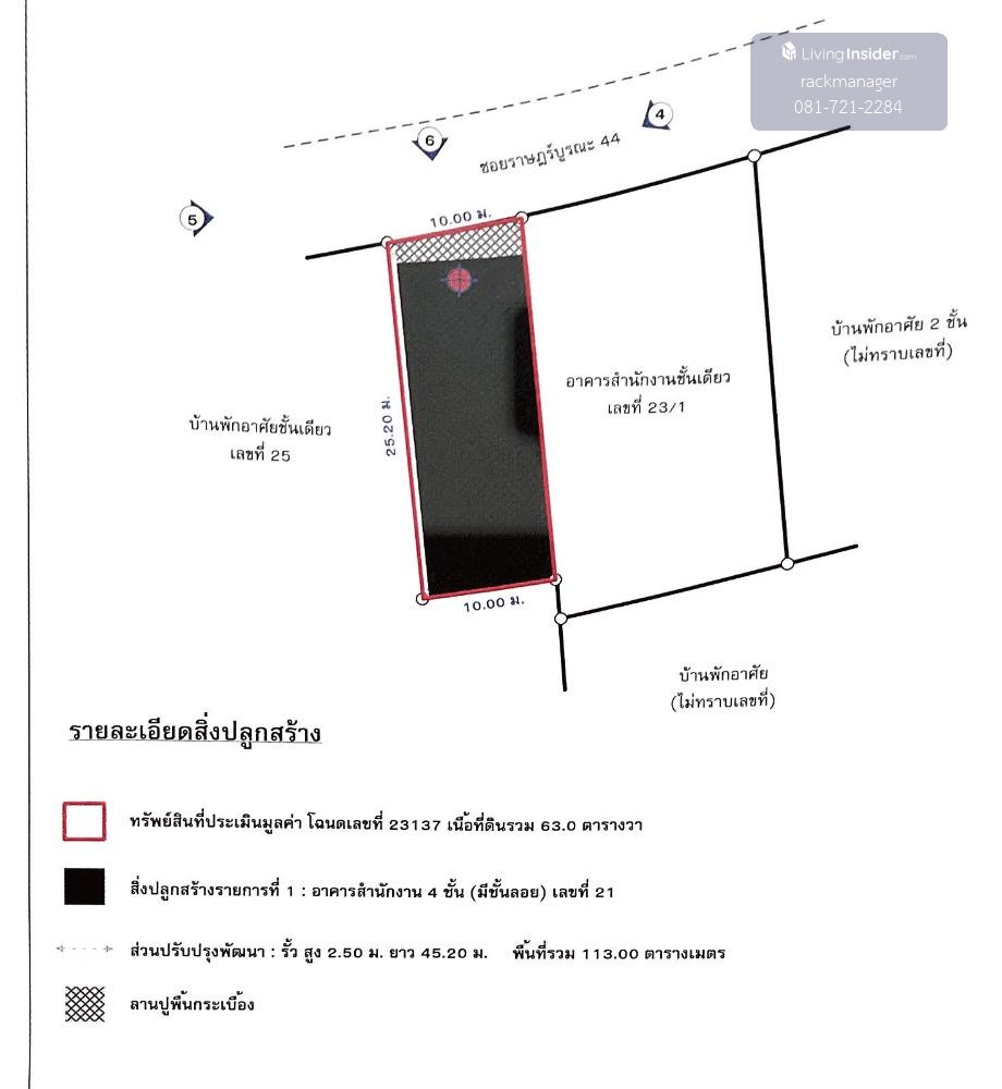 ประกาศขายสำนักงานขนาด 4 ชั้น พร้อมพื้นที่จอดรถในซอยวัดสน (ซอยราษฏร์บูรณะ 44) โดยเป็นทรัพย์สองทรัพย์ขายพร้อมกัน (ทรัพย์ที่ 1 และ ทรัพย์ที่ 2) รวมพื้นที่ที่ดินกว่า 179 ตารางวา และ อาคารสำนักงานมีพื้นที่ใช้สอยกว่า 275 ตารางเมตร รายการทรัพย์ที่ 1 : ที่ดินพร้อมสิ่งปลูกสร้างอาคารสำนักงานเลขที่ 21(อาคารสร้างเต็มพื้นที่) ทรัพย์นี้เป็นที่ดินพร้อมสำนักงาน โดยเป็นสำนักงานสร้างและใช้งานแล้ว มีเครื่องเฟอร์นิเจอร์ตกแต่งภายในพร้อมสรรพทั้งหมด โดยมีพื้นที่ใช้สอยมากกว่า 275 ตารางเมตร ทั้งหมด 4 ชั้น (ถ้าหากว่ารวมชั้นลอยด้วยก็ทั้งหมดจะเป็น 5 ชั้น) อาคารมีลิฟท์ติดตั้งแล้ว โดยโดยสารได้ทั้งหมดห้าชั้นด้วยกัน การตกแต่งบางชั้นยังคงเป็นสภาพเหมือนบ้านพักอาศัย แต่ส่วนใหญ่แล้วเป็นสำนักงานตู้ไฟอยู่บริเวณขั้นที่ 1 แต่ละชั้นมีห้องน้ำแยกกันเป็นชั้นๆไป ด้านหลังมีดัดแปลงพื้นที่ทำเป็นครัวไทย - ที่ดินพร้อมสิ่งปลูกสร้าง จำนวน 1 รายการ เนื้อที่ดินรวม 63 ตารางวา เลขที่โฉนด : 23137 เลขที่ดิน 383 (ครุฑแดง) ปลอดจำนอง หน้ากว้าง 10 เมตร ติดถนนซอยราษฏร์บูรณะ ระยะที่ดินลึก 25.2 เมตร (ที่ดินทรงสีเหลี่ยมผืนผ้า) พิกัดที่ดิน : 13.673110, 100.516993 - อาคารสำนักงาน 4 ชั้น (มีชั้นลอย) เลขที่ 21 พื้นที่ใช้สอยภายใน 725.75 ตร.ม. พื้นที่ครัว(ต่อเติมด้านหลัง) 28.50 ตร.ม. พื้นที่ระเบียง 39.25 ตร.ม. รายการทรัพย์ที่ 2 : ที่ดินพร้อมสิ่งปลูกสร้างอาคารชั้นเดียวเลขที่ 23/1 และลานจอดรถ ทรัพย์นี้วัตถุประสงค์การใช้งานหลักคือที่จอดรถ และ ส่วนของหน้าร้านค้าเพื่อการพาณิชย์ โดยสามารถจอดรถได้มากกว่า 10 ช่องจอดทั้งบริเวณ มีส่วนที่หันออกด้านหน้าถนนเหมาะกับการเอาเป็นร้านค้า ที่จอดรถส่วนมากแล้วใช้สำหรับจอดสำหรับพนักงานเพื่ออาคารสำนักงานตามรายการทรัพย์ที่ 1 - ที่ดินขนาด 115.5 ตารางวา - ที่ตั้งทรัพย์ เลขที่ 23/1 ซอยราษฏร์บูรณะ 44 ถนนราษฏร์บูรณะ กรุงเทพฯ - พิกัดที่ดิน 13.673114,100.517012 - โฉนดที่ดินเลขที่ 55588 ตำบลราษฏร์บูรณะ อำเภอราษฏร์บูรณะ กรุงเทพฯ อาณาเขตที่ดิน ทิศเหนือ , ด้านหน้าเขตที่ดิน กว้าง 16 เมตร , ติดต่อกับถนนซอยราษฏร์บูรณะ 44 ทิศใต้ , ด้านหลังเขตทึ่ดิน กว้าง 16 เมตร , ติดบ้านพักอาศัยของบุคคลอื่น (ไม่ทราบเลขที่บ้าน) ทิศตะวันออก , ด้านข้าง 28.50 เมตร , ติดกับบ้านพักอาศัยบุคคลอื่นบ้าน 2 ชั้น (ไม่ทราบเลขที่บ้าน) ทิศตะวันตก , ด้านข้าง 28.50 เมตร , ติดกับอาคารสำนักงาน 4 ชั้น (มีชั้นลอย) เลขที่บ้าน 21