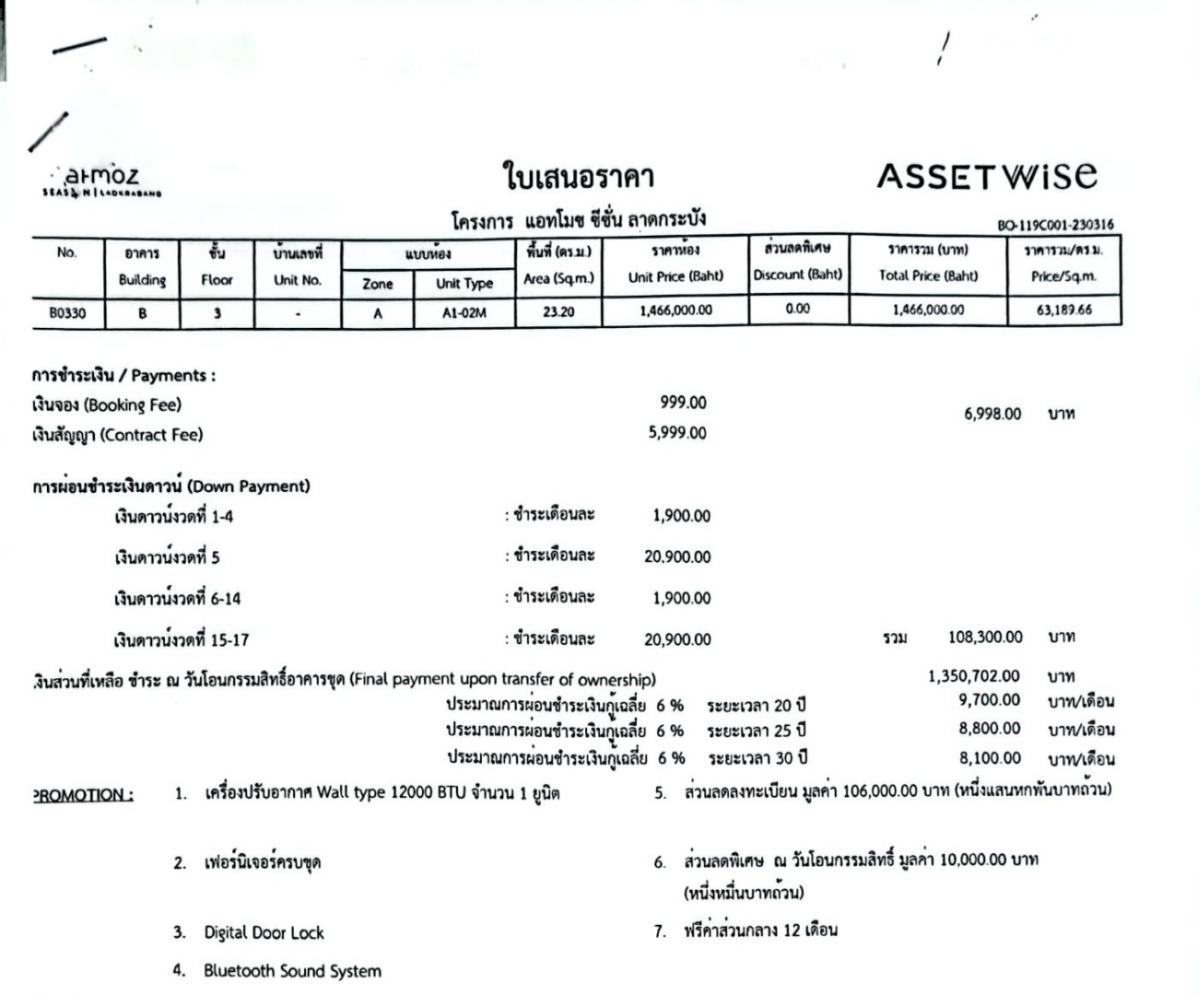 🔹ห้อง B0330 ชั้น 3 ห้องฝั่งทิศเหนือ ขนาดห้อง 23.20 ตรม. 1ห้องนอน 1 ห้องน้ำ 🔹ขายดาวน์ 109,298 บาท (ซื้อก่อน 25 ก.พ.67) ราคาหน้าสัญญา 1,466,000 บาท โครงการพร้อมเข้าอยู่ ปลายปี 67 🔹ส่วนลดพิเศษ ณ วันโอนกรรมสิทธิ์ เป็นจำนวนเงิน รวมทั้งสิ้น 116,000.00 บาท - ส่วนลดลงทะเบียน มูลค่า 106,000.00 บาท - ส่วนลดพิเศษ ณ วันโอนกรรมสิทธิ์ มูลค่า 10,000.00 บาท - ฟรีค่าส่วนกลาง 12 เดือน 📌สนใจโทร คลิกเพื่อดูเบอร์โทรติดต่อ ติดต่อ พีท LINE id : thepeatbrand หรือ https://line.me/ti/p/OjEuut271f Realty One Estate (Thailand) Co.,Ltd. (ในสังกัดสมาคมนายหน้าอสังหาริมทรัพย์ไทย) 🔹รายการส่งเสริมการขายที่มอบให้ 1.เครื่องปรับอากาศ Wall type 12000 BTU จำนวน 1 ยูนิต 2.เฟอร์นิเจอร์ครบชุด 3.Digital Door Lock 4.Bluetooth Sound System คอนโดที่ส่วนกลางเยอะที่สุดในย่าน : ที่นี่ให้พื้นที่ส่วนกลางมาทุกอาคาร รวมมากกว่า 43 ฟังก์ชัน ทั้งภายในและภายนอกอาคาร บางพื้นที่เปิดรองรับการใช้งานตลอด 24 ชั่วโมง ห้องขายพร้อมเฟอร์ : รูปแบบการขายจะเป็นแบบ Fully Furnished ให้เฟอร์นิเจอร์ชิ้นหลักๆ วางพอดีกับแปลนห้องมาให้เลย ทำเล : เข้า-ออกได้จากถนนฉลองกรุง ใกล้กับ V Market เดินทางสะดวก ใกล้นิคมฯ ลาดกระบัง และ พระจอมเกล้าฯ ลาดกระบัง มีตัวเลือกของกินหลากหลาย