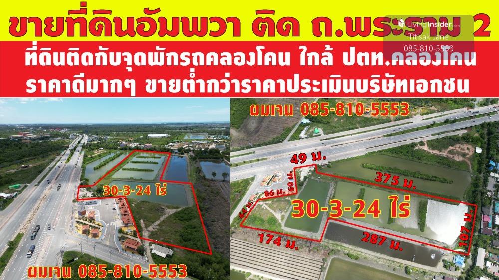 ขายที่ดินติดถนนพระราม 2 ราคาดีมาก ทำเลดีมาก ขายต่ำกว่าราคาประเมิน หน้ากว้างติดถนนประมาณ 49 เมตร ติดกับจุดพักรถคลองโคน บ้านดอนจั่น ต.ยี่สาร อ.อัมพวา สมุทรสงคราม ***แปลงที่ 2*** ขายที่ดิน ใกล้ถนนพระราม 2 อยู่ติดถนนชลประทาน ต.ยี่สาร อ.อัมพวา สมุทรสงคราม ขนาด 17 ไร่ 81 ตรว. กว้าง 112 เมตร ลึก 272 เมตร ราคาดีมากจริงๆ ขายที่ดินต่ำกว่าราคาประเมินเยอะมาก - ขายเพียง ตรว.ละ 2,500 บาท 1 ล้านต่อไร่ ราคา 17.2 ล้านบาท ราคาประเมินเอกชน 3500 บาทต่อตรว. หรือไร่ละ 1.4 ล้านบาท แปลงสวยมาก สี่เหลี่ยมผืนผ้า หน้าแปลงติดถนนชลประทาน ที่ดินอยู่ฝั่งถนนพระราม 2 ขาเข้า ตรงข้าใจุดพักรถคลองโคน จากริมถนนพระราม 2 ขาเข้า ตรงเข้าถนนชลประทานเพียง 900 เมตร (เขตถนนกว้าง 40 เมตร ปัจจุบันเป็น ถนนลาดยาง 6 เมตร 2 เลน) แปลงสวย ปัจจุบันเป็นสวนมะพร้าว 70% ที่เหลือเป็นที่ดินรกร้างมีต้นไม้ขึ้น -คลิป youtube: https://youtu.be/mZpGt3J5Ojw -ตำแหน่งที่ดิน Google Map: https://goo.gl/maps/cemRhMoJ85JcysMT7 - ที่ดินเป็นสวนมะพร้าว 70% มีท้องร่องต่ำกว่าถนนเฉลี่ย 1 เมตร - สามารถดำเนินการหรือประกอบกิจการได้ในอาคารที่มีพื้นที่รวมกันไม่เกิน 2000 ตารางเมตร - ผังเมืองสีเขียว เหมาะทำเกษตรกรรม เลี้ยงสัตว์น้ำ ที่พักอาศัยทั่วไป หรือจะขออนุญาติทำรีสอท หรือกิจการขนาดเล็กๆที่ไม่กระทบต่อสิ่งแวดล้อมได้ - ที่ดินมีสาธารณูปโภคเข้าถึงทรัพย์สิน ได้แก่ ไฟฟ้า ประปา เครือข่ายโทรศัพท์ เป็นต้น - ใกล้เคียงกับ จุดพักรถคลองโคน วัดธรรมประดิษฐ์ โรงเรียนบ้านดอนจั่น ตลาดปลาแม่กลอง ปตท.คลองโคน แปลงที่ 1 หัวมุมติดถนนพระราม 2 - 30 ไร่ 3 งาน 24 ตรว. (12,324 ตรว.) ขายเพียงตรว.ละ 4,760 บาท หรือ 1.9 ล้าน/ไร่ ราคาเพียง 58.54 ล้านบาท ขายยกแปลง ขายต่ำกว่าราคาประเมิน - ที่ดินติดถนนพระราม 2 ขาออก ต.ยี่สาร (คลองโคน) อัมพวา สมุทรสาคร ติดกับจุดพักรถคลองโคน ใกล้ ปตท.คลองโคน - พื้นที่ส่วนใหญ่ 70% เป็นบ่อเลี้ยงปู ลึกเพียง 1 เมตร เท่านั้น ตามรูปถ่ายตอนที่น้ำแห้ง -พื้นที่ 30% เป็นที่ดินเสมอถนน -ค่าถมดินย่านนี้ขั้นสูง ไร่ละประมาณ 300,000 บาท/ไร่/เมตร งบประมาณในการถมประมาณ 6 ล้านบาทเท่านั้น -คลิปวีดีโอโดรนที่ดิน https://youtu.be/6ug8X1mXZ74 - Location Google Map : https://goo.gl/maps/YMLTQzH97dSQSL6NA - ที่ดินเป็นที่ดินที่ทำบ่อเลี้ยงกุ้งอยู่ในปัจจุบัน 75% ด้านหลังติดคลองขุดดอนจั่นกว้างประมาณ 180 เมตร - ที่ดินมีสาธารณูปโภคเข้าถึงทรัพย์สิน ได้แก่ ไฟฟ้า ประปา เครือข่ายโทรศัพท์ เป็นต้น - ใกล้เคียงกับ จุดพักรถคลองโคน วัดธรรมประดิษฐ์ โรงเรียนบ้านดอนจั่น ตลาดปลาแม่กลอง ปตท.คลองโคน สนใจติดต่อผมเจน We Agent Living ได้เลยครับ ยินดีให้บริการครับ เจน โทรและไลน์ คลิกเพื่อดูเบอร์โทรติดต่อ นายหน้าอสังหาริมทรัพย์มืออาชีพ #ขายที่ดินราคาถูก