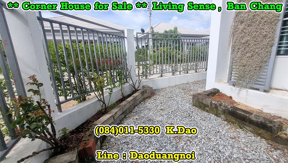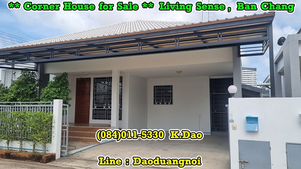#Living Sense,BanChang*** Corner House for Sale ***2.99 MB *** Corner House for Sale *** Living Sense, Ban Chang Located on the road to Phla Beach. Direct to the Motorway. Location : https://goo.gl/maps/CgThXZ3z5nZCC3eN8 1-Storey House Land Area 53.3 Sqr.wah House Area 145 Sqr.m. Width 12 M. x Length 11 M. 3 Bedrooms 2 Bathrooms 1 Living Room 1 Built-in Kitchen 1 Dining Area 1 Storage Room 2 Canopy Roofs 2 Parking Fully Furnished +++ Sales Price 2.99 MB +++ 24-Hour Security Guard *** East-Facing House *** Contact for buying with Dao. Tel. : (084)011-5330 Line ID : Daoduangnoi WhatsApp : คลิกเพื่อดูเบอร์โทรติดต่อ https://www.facebook.com/ThePastelProperty
