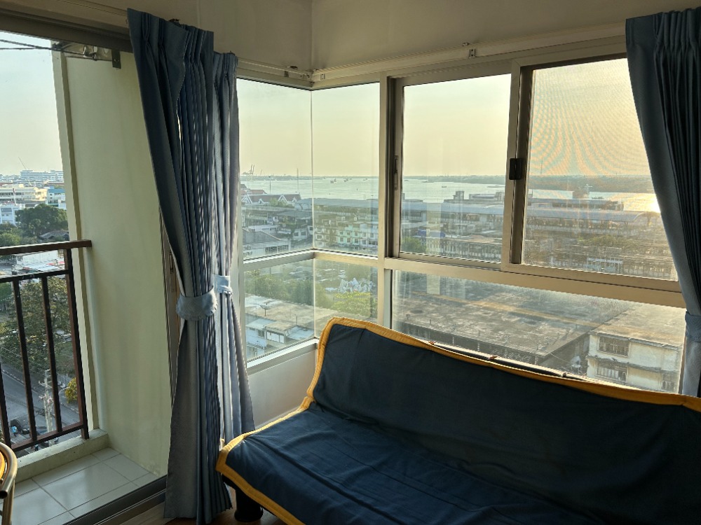 ห้องใหญ่หัวมุม 32 ตร.ม สัญญา 1 ปี ค่าเช่า 8,500 สัญญา 2 ปี 8,000 บาท ห้องเล็ก ,28 ตรม. ค่าเช่า 6,500 สัญญา 2 ปี 6,000 บาท ชั้น 11 ตึก B วิวแม่น้ำ เจ้าพระยา อุปกรณ์ไฟฟ้าครบ ตู้เย็น ไมโครเวฟ เครื่องทำน้