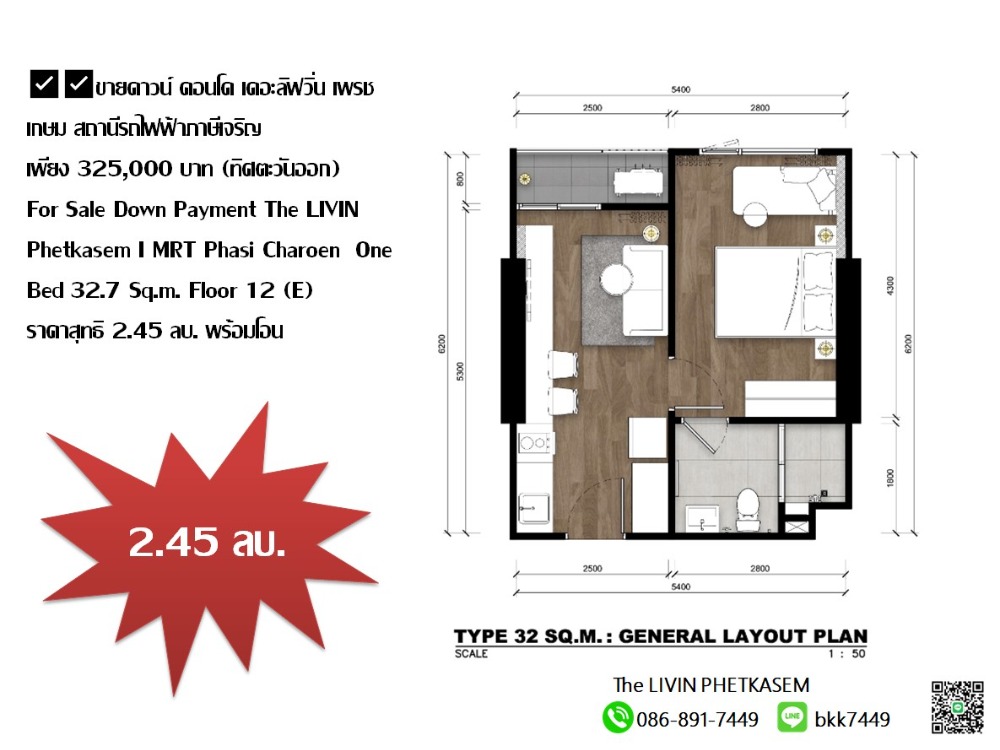 ✅✅ขายดาวน์ คอนโด เดอะลิฟวิ่น เพรชเกษม สถานีรถไฟฟ้าภาษีเจริญ เพียง 325,000 บาท For Sale Down Payment The LIVIN Phetkasem I MRT Phasi Charoen One Bed 32.7 Sq.m. **ใครหาคอนโดแถวนี้อยู่ห้ามพลาด** **************************************************** 1นอน 1น้ำ พ.ท.32.7 ตร.ม ชั้น12 ตึกB ทิศตะวันออก วิวสวนหย่อม วิวเมือง ฝั่งซีคอน แถมชุดครัวบิ้วอิน แอร์ 2 ตัว สถานที่ใกล้เคียง 📌รพ.เพรชเกษม 2 📌ซีคอน บางแค 📌MRTภาษีเจริญ 689 ถ. เพชรเกษม Bangwa, เขตภาษีเจริญ กรุงเทพมหานคร 10160 https://maps.app.goo.gl/KsdxLQGA1vfiP1D3A ************************************************** ขายดาวน์ 325,000 บาท รวมค่าเปลี่ยนสัญญาแล้ว - เจ้าของใจดี ราคาขาย 2.45 ลบ. 74,900 บ/ตรม. เท่านั้น (ราคานี้หาไม่ได้อีกแล้ว) ถูกกว่าราคาปัจจุบัน 3-4 แสนบาท ☎️TEL: คลิกเพื่อดูเบอร์โทรติดต่อ (AG Post) ✅Line ID: bkk7449