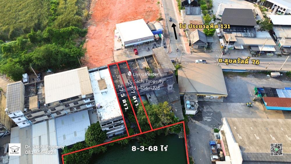 Property ID : CS67-019 ที่ดินสวยพร้อมสิ่งปลูกสร้าง ซ.สุขสวัสดิ์ 76 ใกล้ ถ.สุขสวัสดิ์ เพียง 1.9 กม. - ที่ดินพร้อมสิ่งปลูกสร้าง เนื้อที่รวม 9 ไร่ 23.2 ตารางวา (3,623.2 ตรว.) - ที่ดิน เนื้อที่ 8 ไร่ 3 งาน 68 ตรว. (3,568 ตรว.) - ที่ดิน กว้าง 45 ม. ลึก 322 ม. โดยประมาณ - ที่ดิน หันหน้า ทิศตะวันตกเฉียงเหนือ - ที่ดิน ทิศเหนือ ติดกับ อาคารพาณิชย์ - ที่ดิน ทิศใต้ ติดกับ คลองบางจาก - ที่ดิน ทิศตะวันออก ติดกับ โรงงาน และ ที่ดิน - ที่ดิน ทิศตะวันตก ติดกับ โรงงาน และ ที่พักอาศัย - อาคารพาณิชย์ 3 ชั้นครึ่ง 2 คูหา เนื้อที่ 55.2 ตรว. - หน้ากว้าง 4 ม. ลึก 26 ม. - ถนนซอยเป็นคอนกรีต กว้าง 8 ม. -------------------------------------------------------- : : ลักษณะเด่น : : - พื้นที่ผังเมืองสีม่วง สามารถสร้างโรงงานได้ - โครงสร้างอาคารพาณิชย์ แข็งแรงดี มีดาดฟ้าใช้ประโยชน์ได้ - เหมาะสำหรับเป็นที่พักอยู่อาศัย ร้านค้า ออฟฟิศสำนักงาน โกดังเก็บสินค้า และโรงงาน - ทำเลดีมาก ใจกลางย่านชุมชน ใกล้สถานศึกษา โรงพยาบาล และสถานที่ราชการ - เชื่อมต่อหลายเส้นทาง ถ.ประชาอุทิศ ถ.สุขสวัสดิ์ ถ.พระราม 2 ใกล้ทางด่วนกาญจนาภิเษก เดินทางเข้า - ออกตัวเมือง สะดวกรวดเร็ว -------------------------------------------------------- สถานที่ตั้ง : : สุขสวัสดิ์ 76 ตำบลบางจาก อำเภอพระประแดง จ.สมุทรปราการ Google Map : : https://maps.app.goo.gl/KBnjzwkY6hKUeYgz7 -------------------------------------------------------- : : สถานที่สำคัญใกล้เคียง : : - บิ๊กซี สุขสวัสดิ์ - โฮมโปร สุขสวัสดิ์ - ตลาดไทยสมบูรณ์สแควร์ - บิ๊กซี ฟู้ดเพลส ประชาอุทิศ - โรงพยาบาลบางจาก - โรงพยาบาลเปาโล พระประแดง - โรงพยาบาลบางปะกอก 3 - โรงเรียนราชประชาสมาสัย - โรงเรียนสารสาสน์ - โรงเรียนอนุบาลสุขสวัสดิ์ - วัดทุ่งครุ -------------------------------------------------------- ราคาขาย รวมอาคารพาณิชย์ : : 75,000,000 บาท (20,700 บาท/ตรว.) (ค่าใช้จ่ายในการโอน ออกคนละครึ่ง) -------------------------------------------------------- : : สอบถามรายละเอียดเพิ่มเติมติดต่อ : : คุณฌัชษชี ฌัชปภาส์มณ (อ้อม) (ในสังกัดสมาคมนายหน้าอสังหาริมทรัพย์ไทย) Tel : คลิกเพื่อดูเบอร์โทรติดต่อ LINE ID : dr.sachiproperty Facebook : Dr. Sachi Property