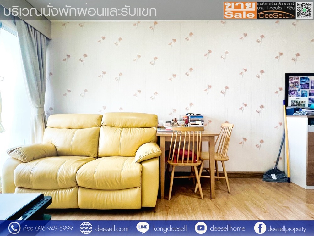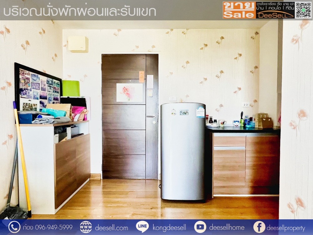 - พื้นภายในห้องเป็นพื้นลามิเนต สภาพดี ผนังปูด้วยวอลล์เปเปอร์ สีโทนอ่อน ห้องจึงดูสว่าง พร้อมผ้าม่านทั้งในห้องนอน และบริเวณนั่งพักผ่อน