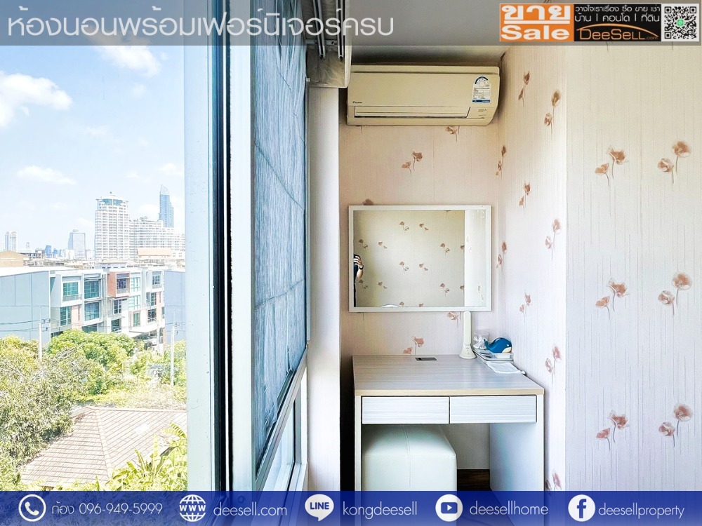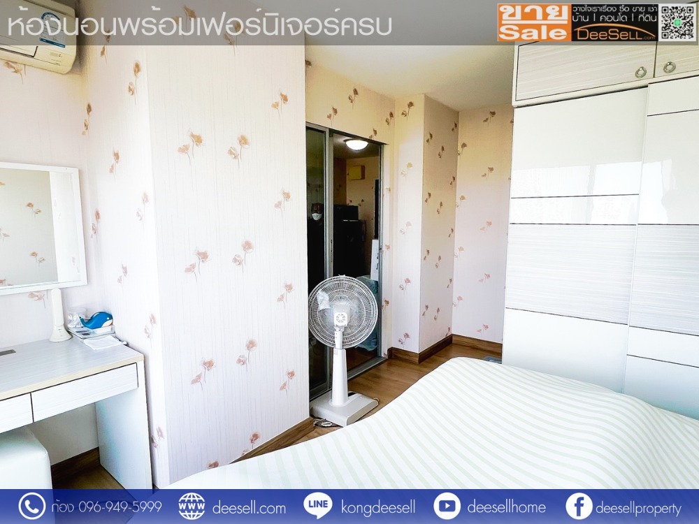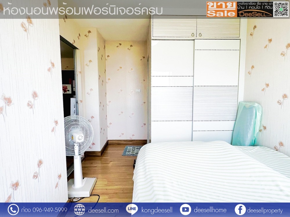 - ภายในห้องนอนมีเตียง ตู้เสื้อผ้าและชุดโต๊ะเครื่องแป้ง Built-in