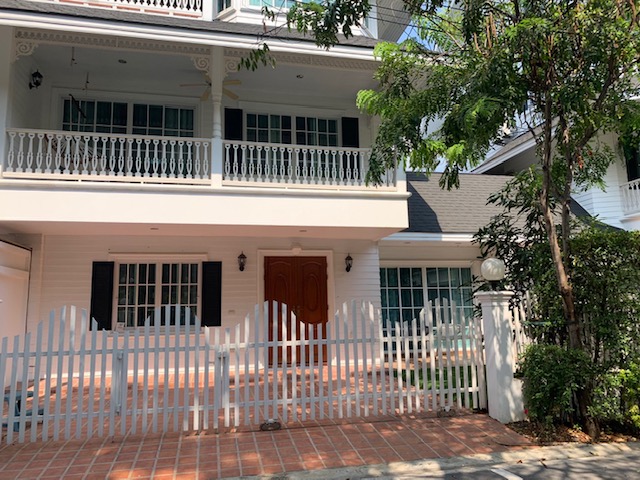 * 3-Storey house, 3 Bedrooms, 2 bathrooms (one with Jacuzzi), 1 restroom on the first floor * Fully furnished, fully equipped kitchen * Balcony with pool view * Nice community with lots of big trees, privacy and peace * Newly renovated, Neat and Clean * Near BTS (Bearing station) * Close to Bangkok Pattana International School and St. Andrew International School. ** Baht70,000 per month, 2 month deposit and 1 month advance Tel. คลิกเพื่อดูเบอร์โทรติดต่อ