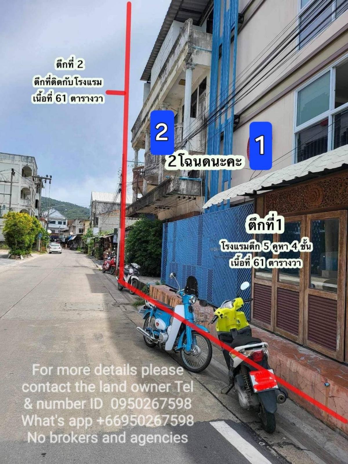 #พิกัดเกาะสมุย koh samui โรงแรม ขายโรงแรมติดชายทะเลหน้าทอน ใกล้ท่าเทียบเรือซีทราน เกาะสมุย จ.สุราษฎร์ธานี ตึก 5 คูหา 4 ชั้น เนื้อที่ 61 ตารางวา ห้องพักสบาย เป็นห้องสตูดิโอทั้งหมด 18 ห้อง ภายในห้องถูกตกแต่งเป็นอย่างดี มีเครื่องอำนวยความสะดวกครบครัน พร้อมวิวทะเลสวยๆ มีห้องพักพร้อมบริการดังนี้ 1 Superior Room ห้องสุพีเรียร์ 9 ยูนิต ขนาดห้อง 18 ตร.ม. 2 Superior Seaview Room ห้องสุพีเรียร์ วิวทะเล พร้อมอ่างอาบน้ำ 3 ยูนิต ขนาดห้อง 18 ตร.ม. 3 Deluxe Seaview Room ห้องดีลักซ์ วิวทะเล พร้อมอ่างอาบน้ำ 6 ยูนิต ขนาดห้อง 26 ตร.ม. และ โครงสร้างตึกยังสร้างไม่แล้วเสร็จ ตึกติดหลังชนกับตึกโรงแรม 5 คูหา เนื้อที่ 61 ตารางวา (คนละโฉนด) รายได้ขั้นต่ำต่อเดือน 400,000 ขายรวม 2 โฉนด 62 ล้านบาท ใบอนุญาตก่อสร้างตึกด้านหลังกำลังจะได้ค่ะ ติดต่อรายละเอียดเพิ่มเติม Tel & LINE คลิกเพื่อดูเบอร์โทรติดต่อ (ไม่รับนายหน้า เอเจนซี่ เจ้าของขายเอง)