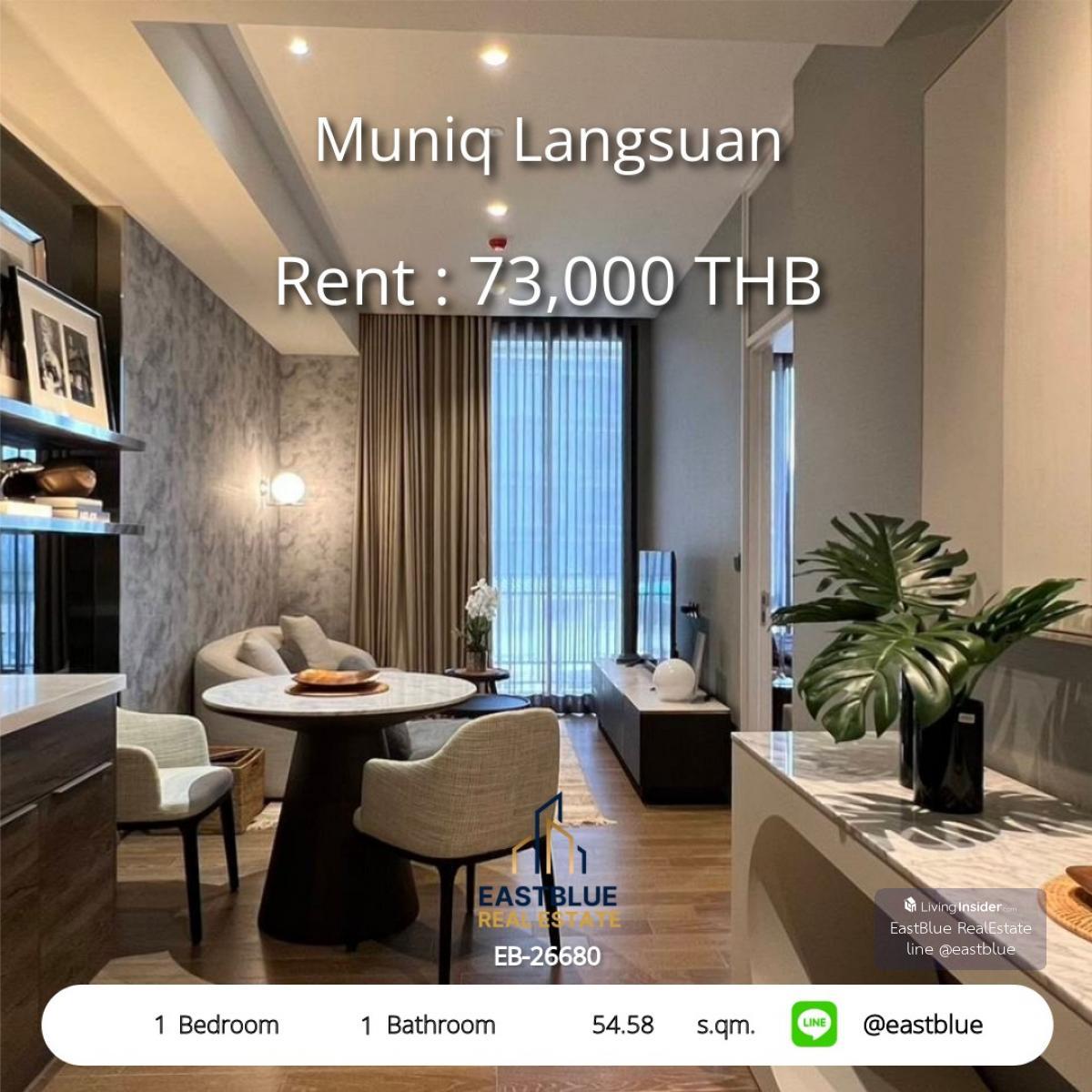 Project : Muniq Langsuan ID : EB-26680 1 Bed 1 Baht Size :54.58 sqm Rental Price : 73,000 THB per month BTS / MRT :Phloen ChitLumpini - minimum contract 6 month - 1 year - Contact, Appointment for vie