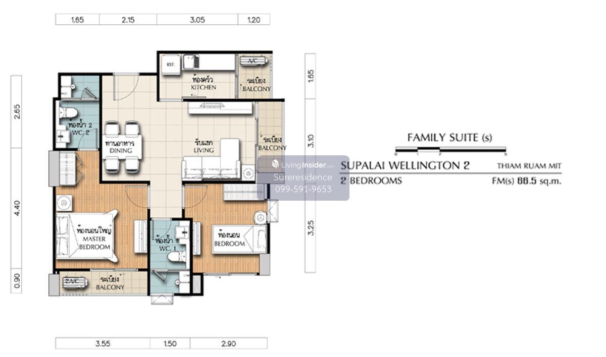 พื้นที่ใช้สอย 66.50 ตร.ม.