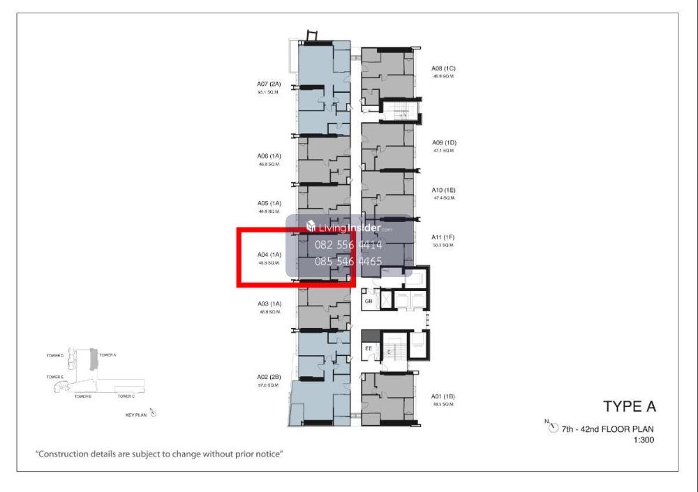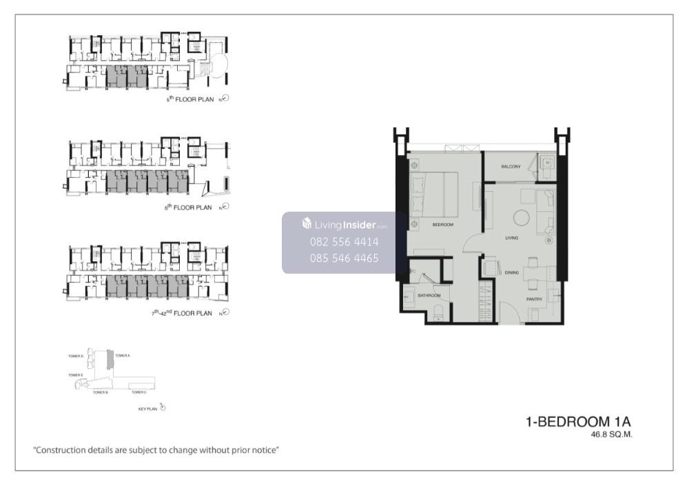 1 ห้องนอน 1 ห้องน้ำ ขนาด 46.80 ตร.ม.