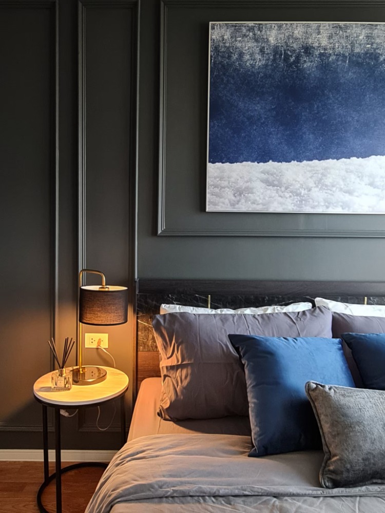 ไม่ต้องหาแล้ว ห้องที่งามที่สุดในตึก ตกแต่งแนว โมเดิร์นคลาสสิค เจือกลิ่นอายความนัวร์ (noir) นิดๆ แต้มด้วยสีน้ำเงินคลาสสิกในธีม Blue is New Black ** ติดต่อคุณหนุ่ม ทักไลน์ kittisak211 หรือโทร คลิกเพื่อด