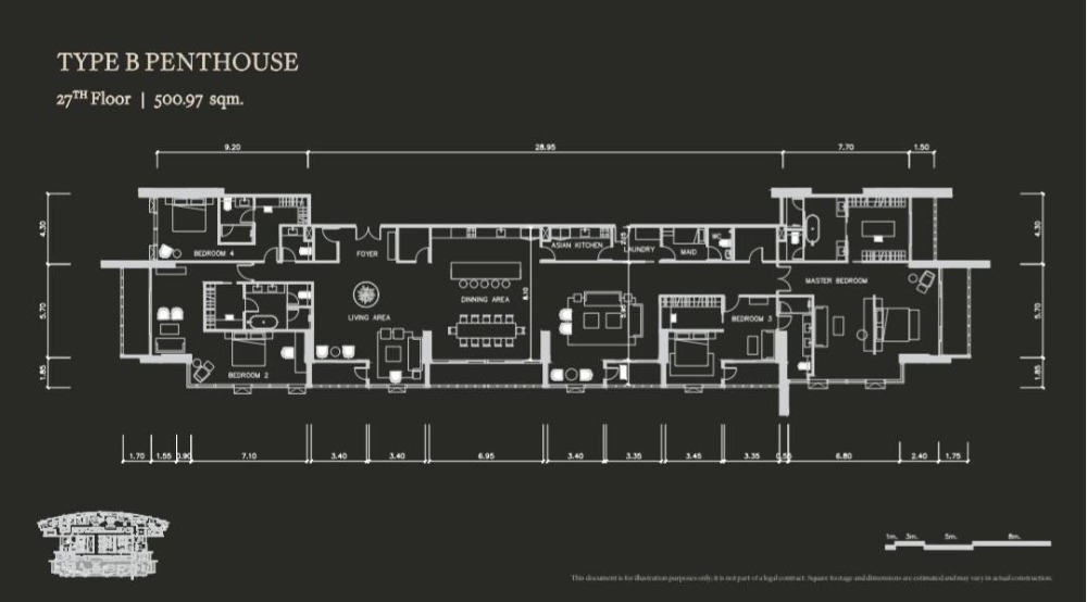 ♦ Penthouse Type B ♦ ชั้น 25+ 534.69 ตร.ม. | 4 ห้องนอน วิวแม่น้ำ Unfurnished | คอนโดใกล้ ไอคอนสยาม 3นาที, BTS สะพานตากสิน 3 นาที