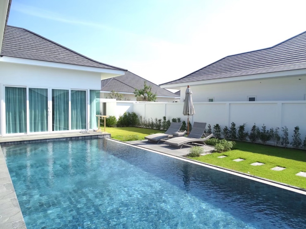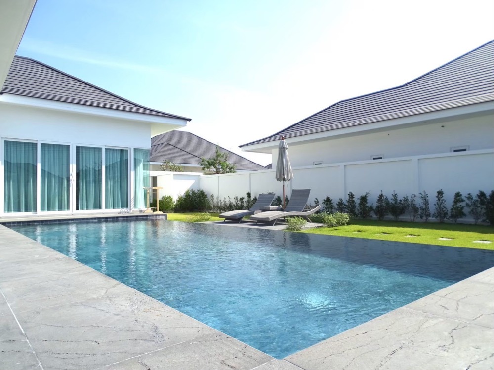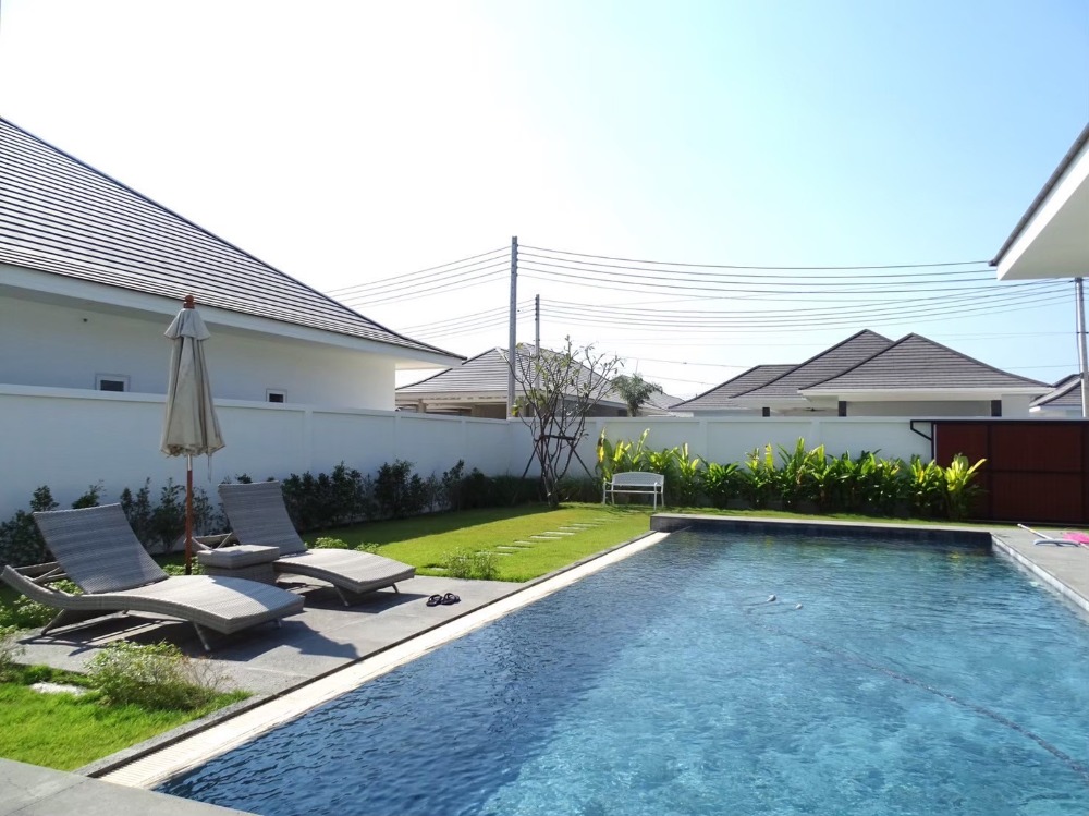 หัวหินบ้านพูลวิลล่าสไตล์โมเดิร์น ขาย 12,000,000 บาท เช่า 65,000บาท/เดือน (รวมอินเตอร์เน็ต + ดูแลสระน้ำ + ดูแลสวน) เช่า 60,000บาท/เดือน (ไม่มีรวมอินเตอร์เน็ต + ดูแลสระน้ำ + ดูแลสวน) ที่ตั้ง : หมู่บ้าน