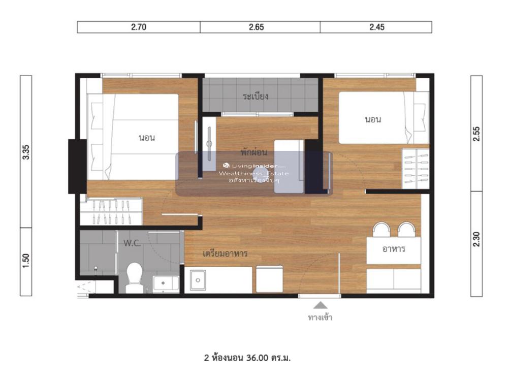 พื้นที่ใช้สอย 36.65 ตร.ม.