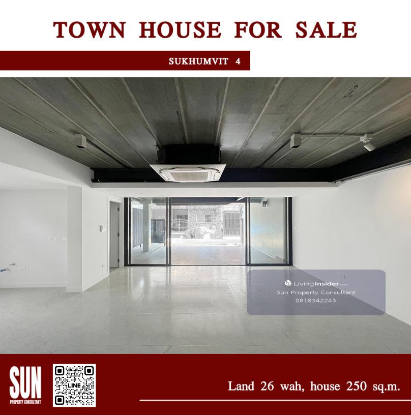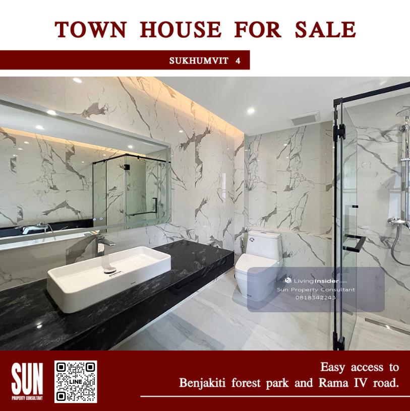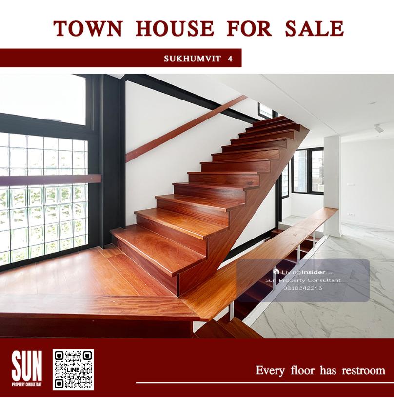 ขายทาวน์เฮ้าส์ ซอยสุขุมวิท 4 บีทีเอส สถานีนานา ตกแต่งใหม่หมด ทั้งระบบน้ำระบบไฟ ใช้วัสดุคุณภาพดีเยี่ยม 3 นอน 4 น้ำ สไตล์โมเดิร์น 3 ชั้น ที่ดิน 26 ตารางวา บ้าน 250 ตารางเมตร มีห้องน้ำทุกชั้น จอดรถได้ 2