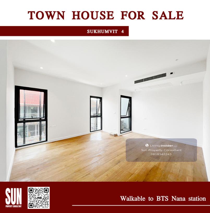 ขายทาวน์เฮ้าส์ ซอยสุขุมวิท 4 บีทีเอส สถานีนานา ตกแต่งใหม่หมด ทั้งระบบน้ำระบบไฟ ใช้วัสดุคุณภาพดีเยี่ยม 3 นอน 4 น้ำ สไตล์โมเดิร์น 3 ชั้น ที่ดิน 26 ตารางวา บ้าน 250 ตารางเมตร มีห้องน้ำทุกชั้น จอดรถได้ 2 คัน เดินถึง BTS สถานีนานา ทำเลสะดวกมาก ใจกลางเมือง เดินถึงสวนป่าเบญจกิติ ทางลัดไปถนนพระราม 4 ใกล้ทางขึ้นลงทางด่วน ทรัพย์หายาก! ขาย 22.8 ล้านบาท