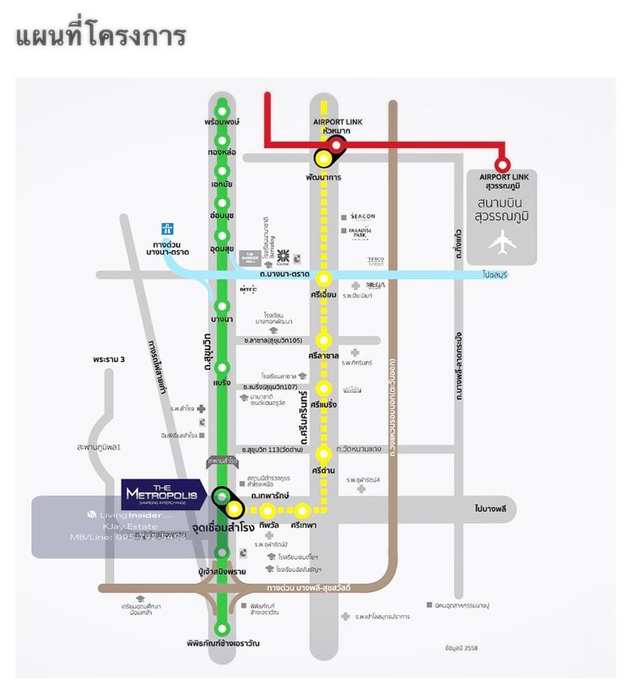 ** สภาพห้องสวยมาก ไม่เคยอยู่หรือปล่อยเช่าค่ะ ** - The Metropolis สำโรง อินเตอร์เชนจ์ - ห้องสตูดิโอ (Studio) - พื้นที่ 28 ตร.ม. - ชั้น 15 อาคาร A - เฟอร์นิเจอร์ Fully Fitted บางส่วน และ Built in เพิ่มเติม จุดเด่น: * จุดเชื่อมต่อ BTS 2 สาย: สถานีสำโรง (สายสีเขียวอ่อน) และสถานีเทพารักษ์ (สายสีเหลือง) * Build-in Furniture: ชั้นวาง TV และตู้เสื้อผ้า * พื้นไม้ Engineer Wood * ขอบประตูหน้าต่าง UPVC ยี่ห้อ Gehäuse กันเสียงจากภายนอกได้ดีเยี่ยม เครื่องใช้ไฟฟ้า 1. แอร์ 1 เครื่อง 2. เตาไฟฟ้า พร้อมเครื่องดูดควัน ส่วนกลางเทียบเท่า Luxury Class Residence กว่า 7,000 ตร.ม. * Onsen บน Rooftop Panoramic View * Golf Simulator พื้นที่สำหรับคนรักกอล์ฟ * Private Theatre โรงภาพยนตร์ส่วนตัวรองรับได้ 15 ท่าน สิ่งอำนวยความสะดวก * Access Card and Face Scanned Control * Lobby * Mailbox * Fitness * สระว่ายน้ำระบบเกลือขนาดใหญ่ 2 สระ (25 ม. & 30 ม.) พร้อมสระเด็ก * ร้านค้าภายในโครงการ: Café Amazon, Lawson 108, Nails & Beauty, คลินิกเวชกรรม, Food Court, * กล้องวงจรปิด CCTV * รปภ. 24 ชม. สถานที่ใกล้เคียง * อิมพีเรียลเวิลด์ - 750 ม. * บิ๊กซีสำโรง - 1.0 กม. * รร. นานาชาติเซนต์แอนดรูวส์ - 1.7 กม. * รพ. สำโรง - 2.3 กม. * รพ. จุฬารัตน์ 2 - 2.7 กม. * เดอะแบงค็อกมอลล์ - 3.6 กม. * รร. นานาชาติบางกอกพัฒนา - 4.3 กม. * รร. อัสสัมชัญ สป. - 4.4 กม. * รร. เซนต์โยเซฟทิพวัล - 4.8 กม. * รร. ลาซาล - 5.9 กม. * เซ็นทรัลบางนา - 6.5 กม. * รพ. สินแพทย์ เทพารักษ์ - 7.0 กม. ติดต่อเพื่อนัดหมายชมห้องหรือสอบถามรายละเอียดเพิ่มเติมได้ที่ คุณไหม กัญชลิดา คลิกเพื่อดูเบอร์โทรติดต่อ Line: @kjay.estate พิกัด Google Map 13.646214, 100.595123