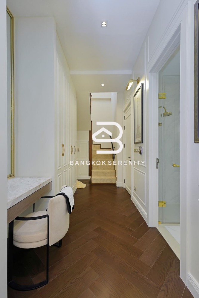 ขายบ้านดีไซน์หรูหราภายในบริเวณเอกมัย 22 *บ้านออกแบบโดย Hirsch Bedner Associates (HBA) มีชื่อเสียงระดับโลกในฐานะบริษัทออกแบบชั้นนำ* - พื้นที่ใช้สอย 500 ตร.ม. บนที่ดิน 49.9 ตร.ว - บ้าน 3 ชั้น (เพดานสูง) - 4 ห้องนอน: แต่ละห้องนอนมีห้องน้ำในตัวพร้อมฝักบัวเรนชาวเวอร์ - 5 ห้องน้ำ : สุขภัณฑ์มาตรฐานยุโรป (kohler Rose Gold Edition) - 2 ห้องนั่งเล่น (Double Volume สำหรับห้องนั่งเล่นหลัก) - ตกแต่งพร้อมเครื่องใช้ไฟฟ้า - ห้องรับประทานอาหารพร้อมห้องครัวแบบเปิด (ห้องเก็บไวน์ 46 ขวดจาก Gorenje) - ชุดครัวแบรนด์หรูนำเข้าจากเยอรมัน (Poggenpohl) พร้อมเครื่องล้างจาน เตา เครื่องดูดควัน เตาอบไมโคร และเตาอบในตัวจาก Gorenje โดย Philippe Starck - ห้องวิสกี้ - ระบบเสียงในตัวโดย Russound - สระว่ายน้ำส่วนตัวปูกระเบื้องหินอ่อน (ระบบเกลือ) - ลิฟต์ส่วนตัว (Schindler) - แยกครัวไทย - แยกห้องแม่บ้านพร้อมห้องน้ำ - ที่จอดรถ 3 คัน (Garage Door by Martin Door, USA) - เครื่องปรับอากาศแบบฝังฝ้าเพดาน โดย Daikin - กล้องวงจรปิด *เจ้าหน้าที่รักษาความปลอดภัย 24 ชม.* พร้อมเข้าอยู่!! ราคาขาย 70,000,000 บาท For viewing please contact: Tel,whatsapp,Line Number: คลิกเพื่อดูเบอร์โทรติดต่อ/ คลิกเพื่อดูเบอร์โทรติดต่อ Line Id: bkkserenity or didimk Email: คลิกเพื่อดูอีเมล FB: https://www.facebook.com/BangkokSerenity IG:bangkokserenity Bangkok serenity Co.,Ltd